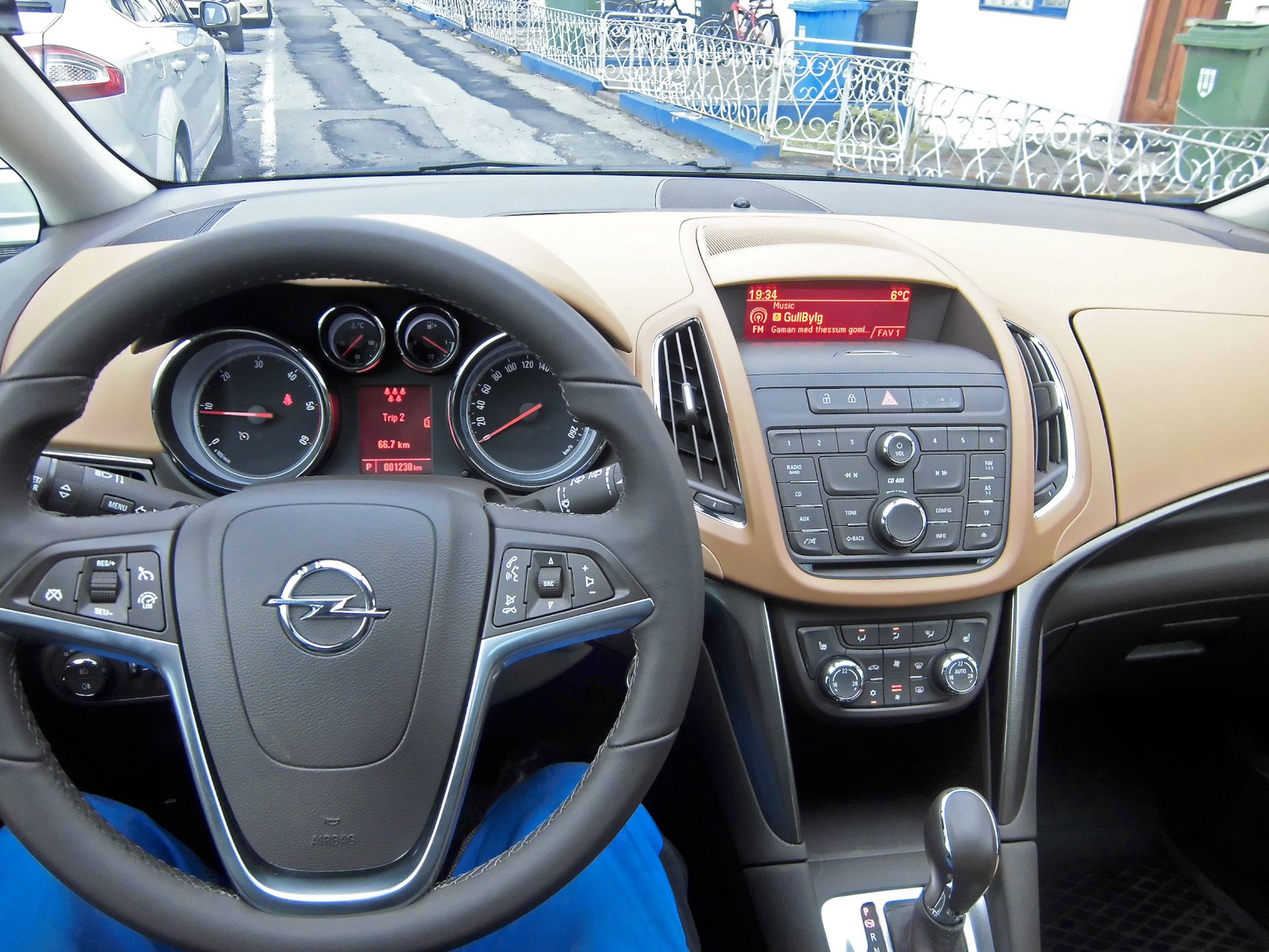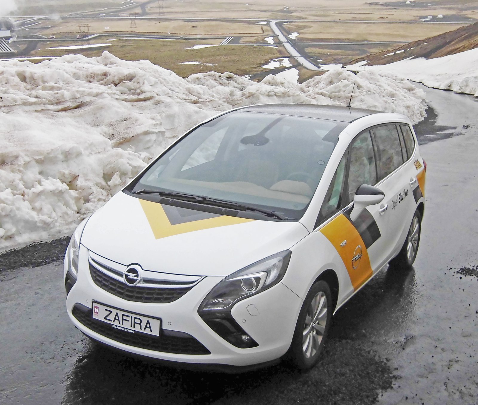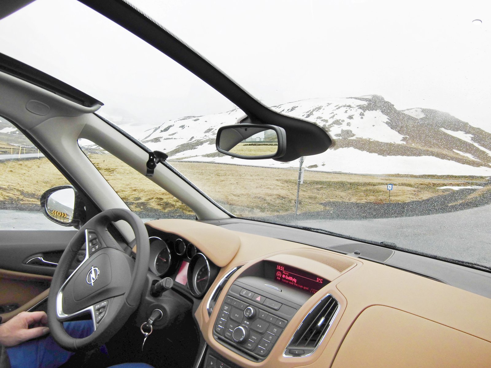 Hönnun framrúðunnar og mikið útsýni út um hana er einkenni Opel Zafira og að setjast inn í bílinn og draga aftur þakið (innréttinguna þar sem sólskyggnið er fest), sem færist allt aftur um 50 cm, við þetta fær maður hreint frábært útsýni upp á við og fyrir íslenskt landslag er enginn bíll sem ég hef prófað sem býður upp á annað eins útsýni og Opel Zafira. Það hefði mátt halda að hönnuður bílsins væri einlægur aðdáandi norðurljósa því að í ofanálag við þetta fína útsýni fram og upp út um framrúðuna er Opel Zafira með stóran þakglugga. Fyrir mér er þessi bíll sérhannaður fyrir norðurljósaferðir og í akstur undir bröttum fjallshlíðum.
