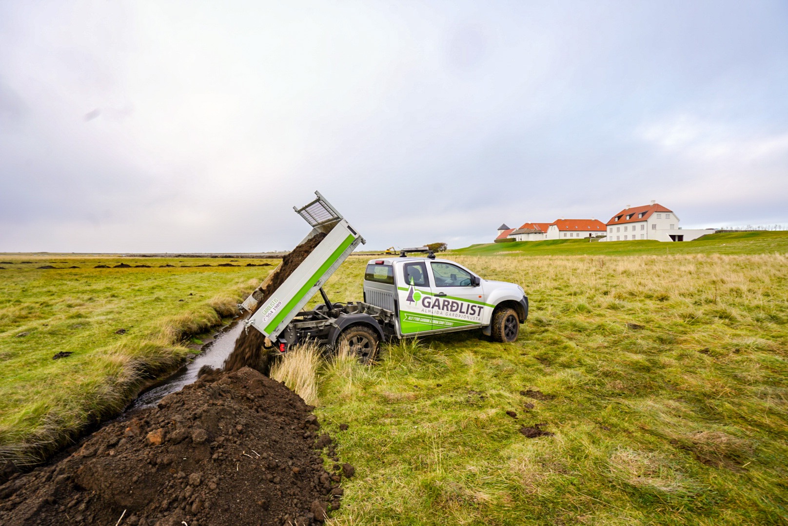 „Við erum að falast eftir samstarfi við landeigendur sem eru með framræst land sem ekki er nýtt til landbúnaðar. Land sem hefur jafnvel aldrei verið nýtt til landbúnaðar eftir að það var framræst,“ segir Einar Bárðarson, framkvæmdastjóri Votlendissjóðs. Myndin sýnir vinnu við endurheimt votlendis með skurðafyllingu við Bessastaði á Álftanesi á síðasta ári. Mynd / Votlendissjóður