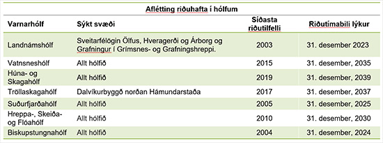 Gangi þetta eftir verða enn sjö varnarhólf skilgreind sýkt svæði; Landnámshólf, Vatnsneshólf, Húna- og Skagahólf, Tröllaskagahólf, Suðurfjarahólf, Hreppa-, Skeiða- og Flóahólf auk Biskupstungnahólfs.