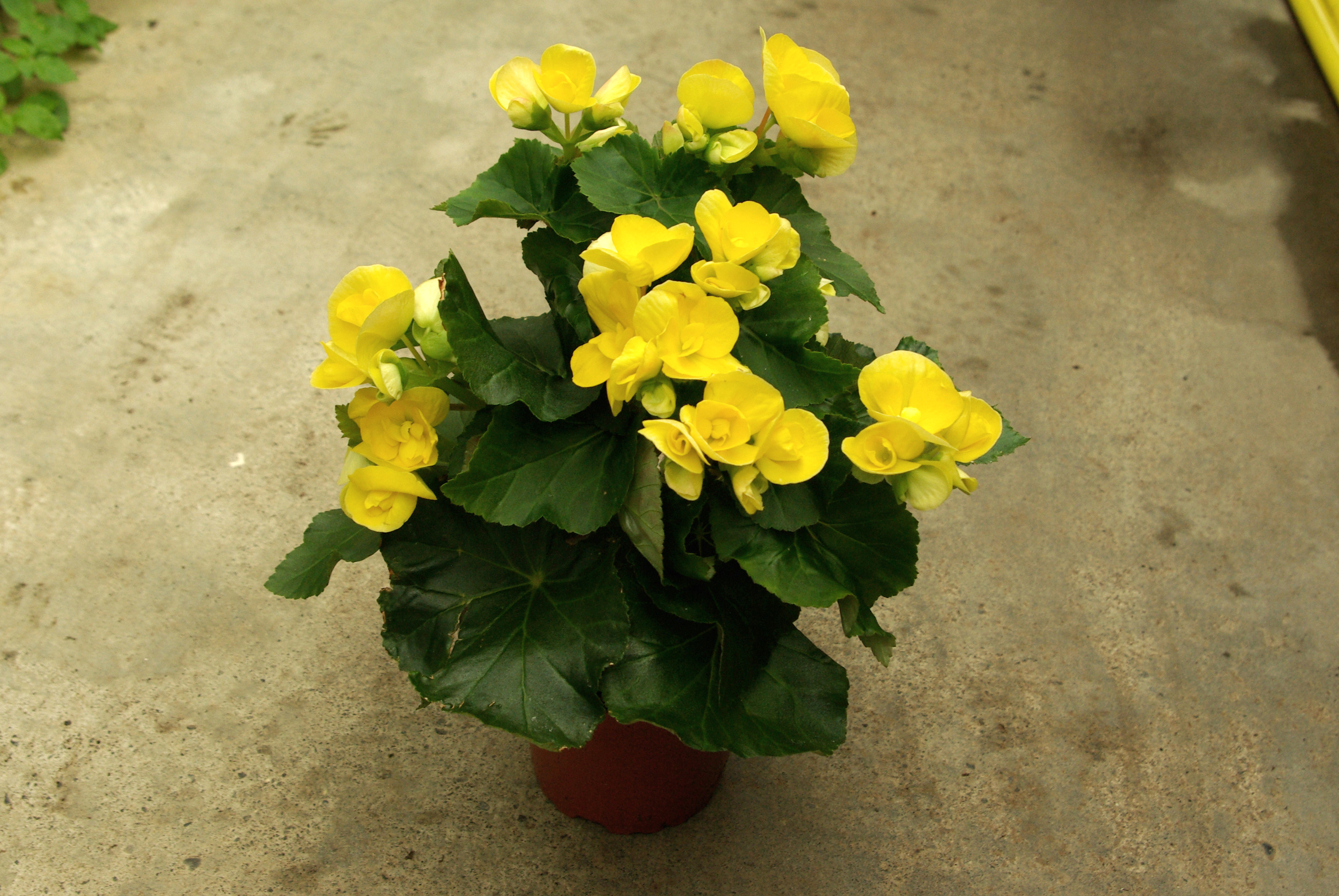 Gulblómstrandi begónía.