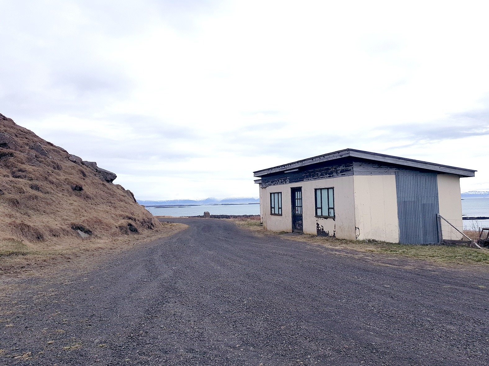 Hér stendur hús útibús Kaupfélagsins á Skálanesi, en þar fékkst besti harðfiskur landsins. Hinum megin við veginn rétt glittir í stein sem gott þótti að berja fiskinn á. Mynd / ál