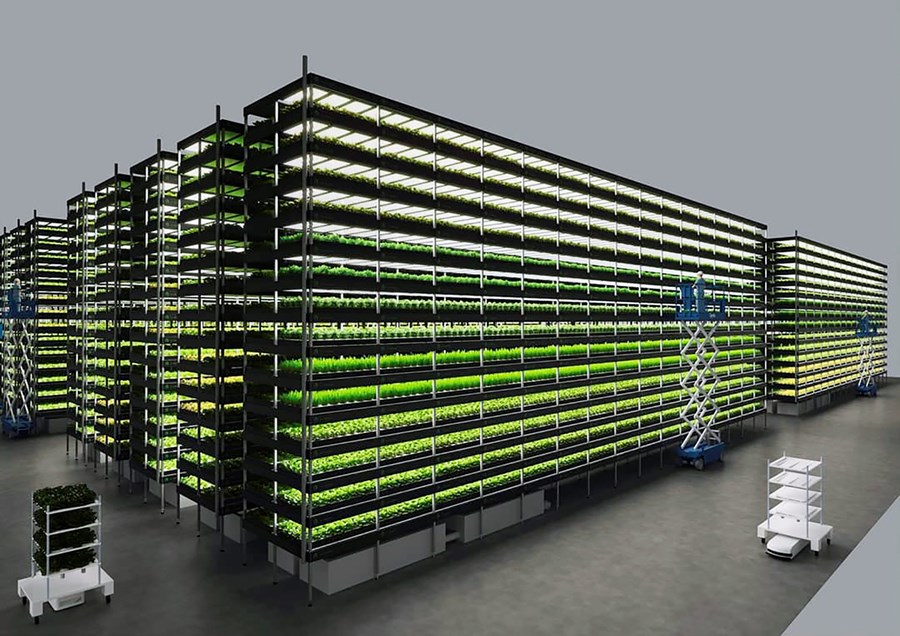 Uppskera verður 15 sinnum á ári í nýju stöðinni þrátt fyrir að plönturnar sjái aldrei dagsljós eða næringarríka jörð en þess í stað er fjólublátt ljós beint að þeim allan sólarhringinn frá 20 þúsund sérútbúnum LED-lömpum. Á þessari framtíðarstöð sjá litlir róbótar um að sá fræjum frá hillurekka til hillurekka. Áætlað er að um 200 tonn af grænmeti verði uppskorið á stöðinni á fyrsta ársfjórðungi næsta árs og síðan um þúsund tonn á ári þegar framleiðslan verður komin á fullt. Þetta verður því ein stærsta stöð þessarar tegundar í Evrópu og raunar heiminum.
