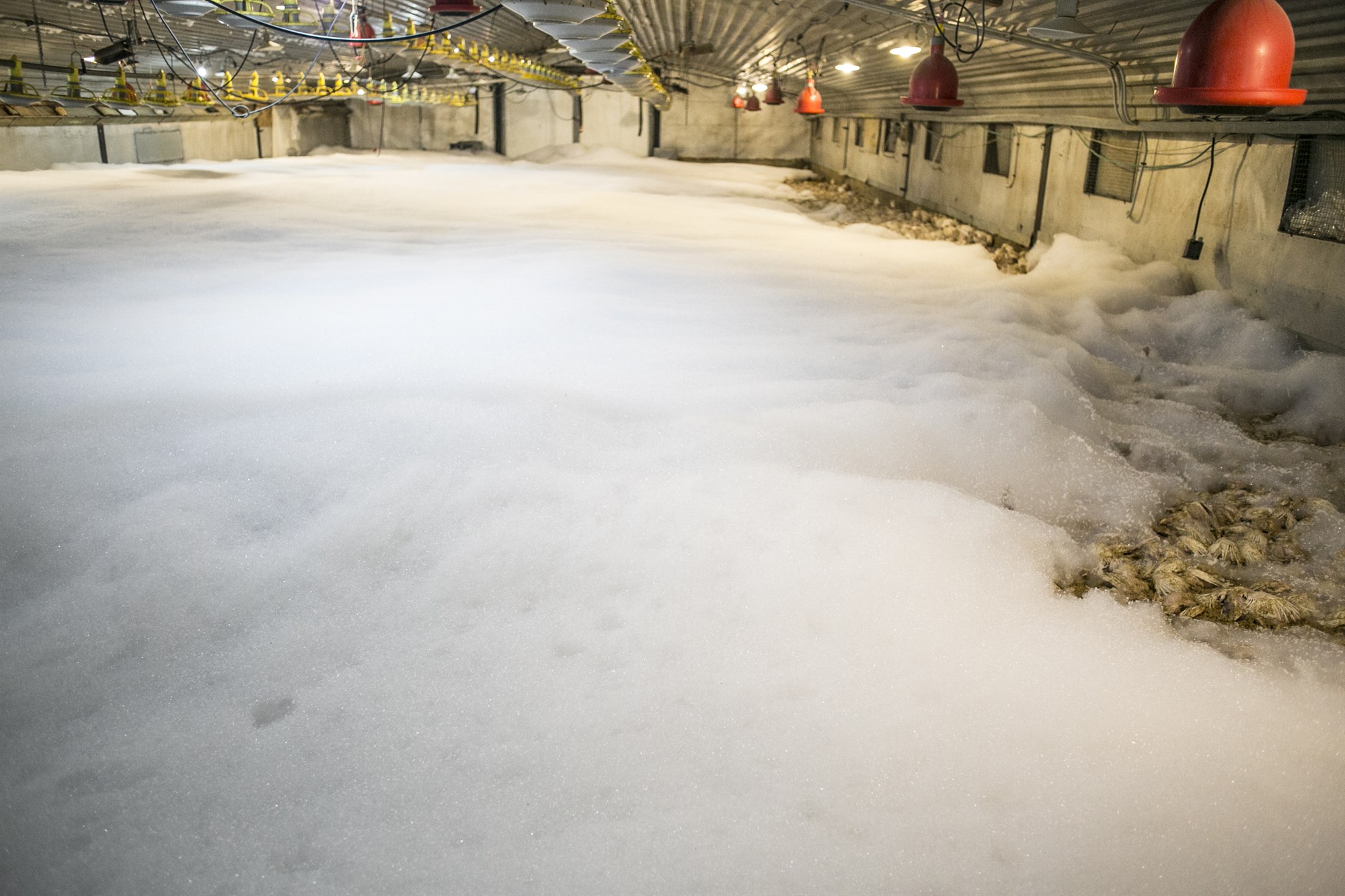 Fuglar á verksmiðjubúum sem reynast smitaðir af fuglaflensu eru oft kæfðir með kvoðu áður en þeim er fargað.