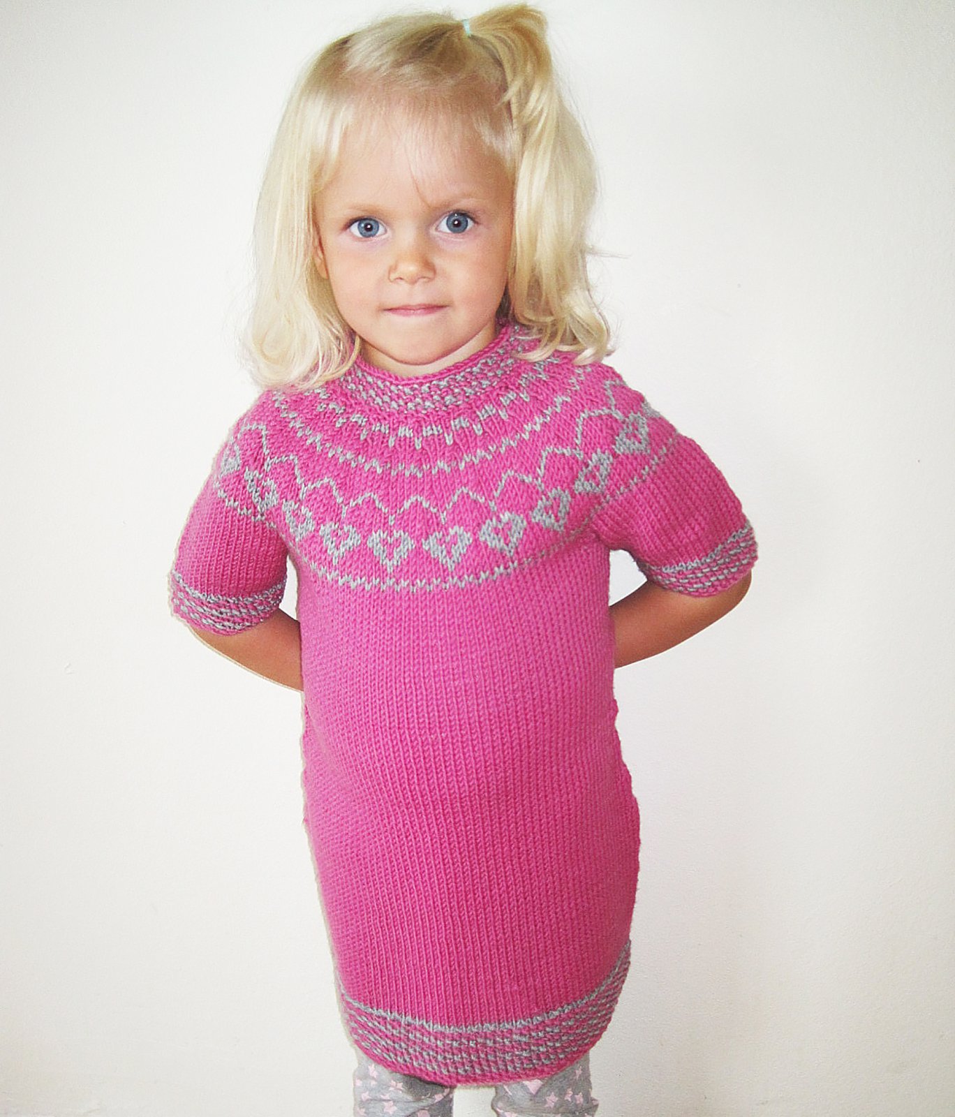 Kjóllinn er prjónaður í hring, byrjað neðst á faldinum.