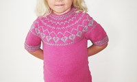 Sameinið bol og ermar á hringprjón nr. 4 , 60 cm, með bleikum. Prjónið eina umferð slétt og takið úr 4 lykkjur, 1 lykkju sitt hvoru megin við handveg, sleppa þessari úrtöku i stærð 1-2 ára. Þá eru eftir á prjónunum 174L (186L).