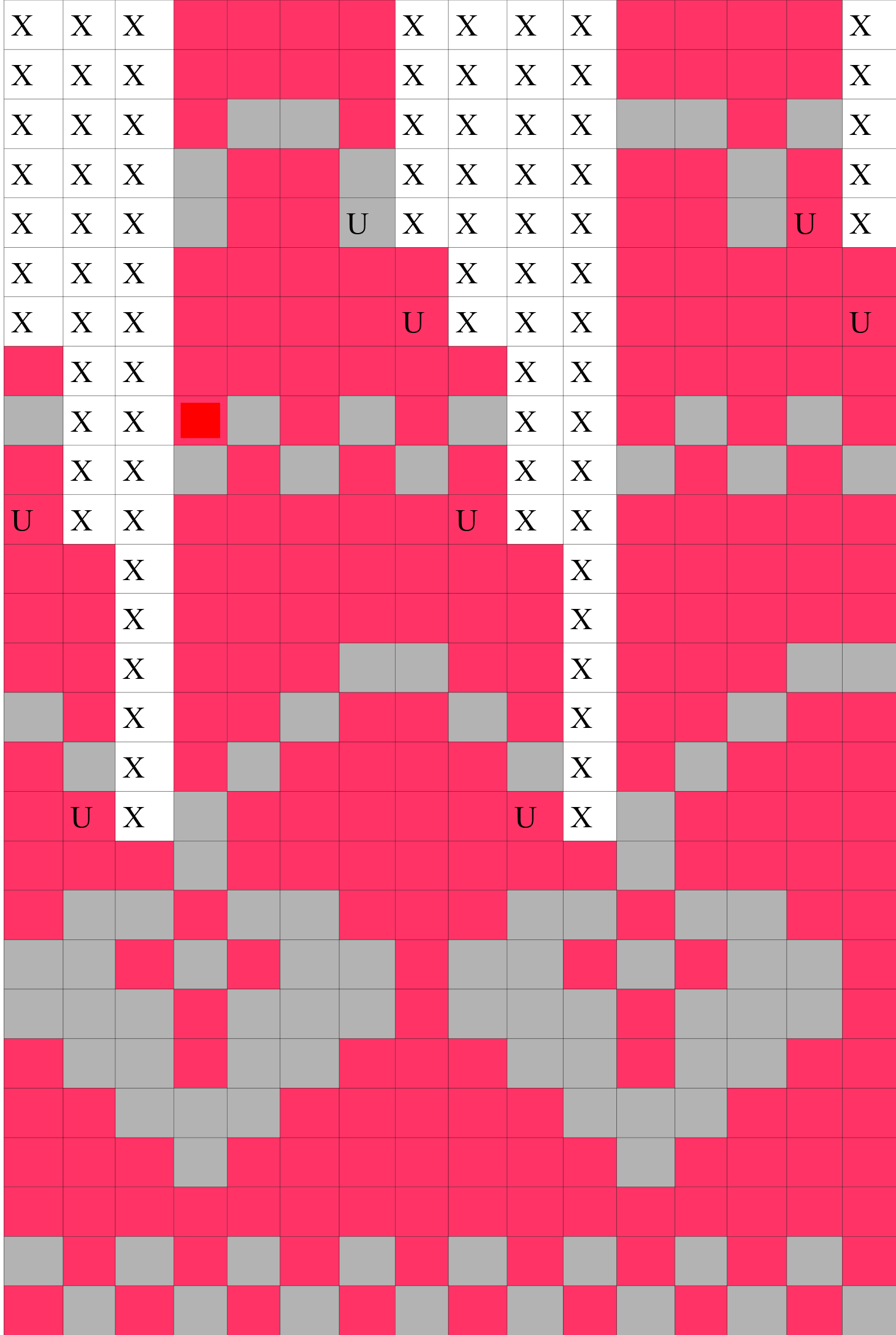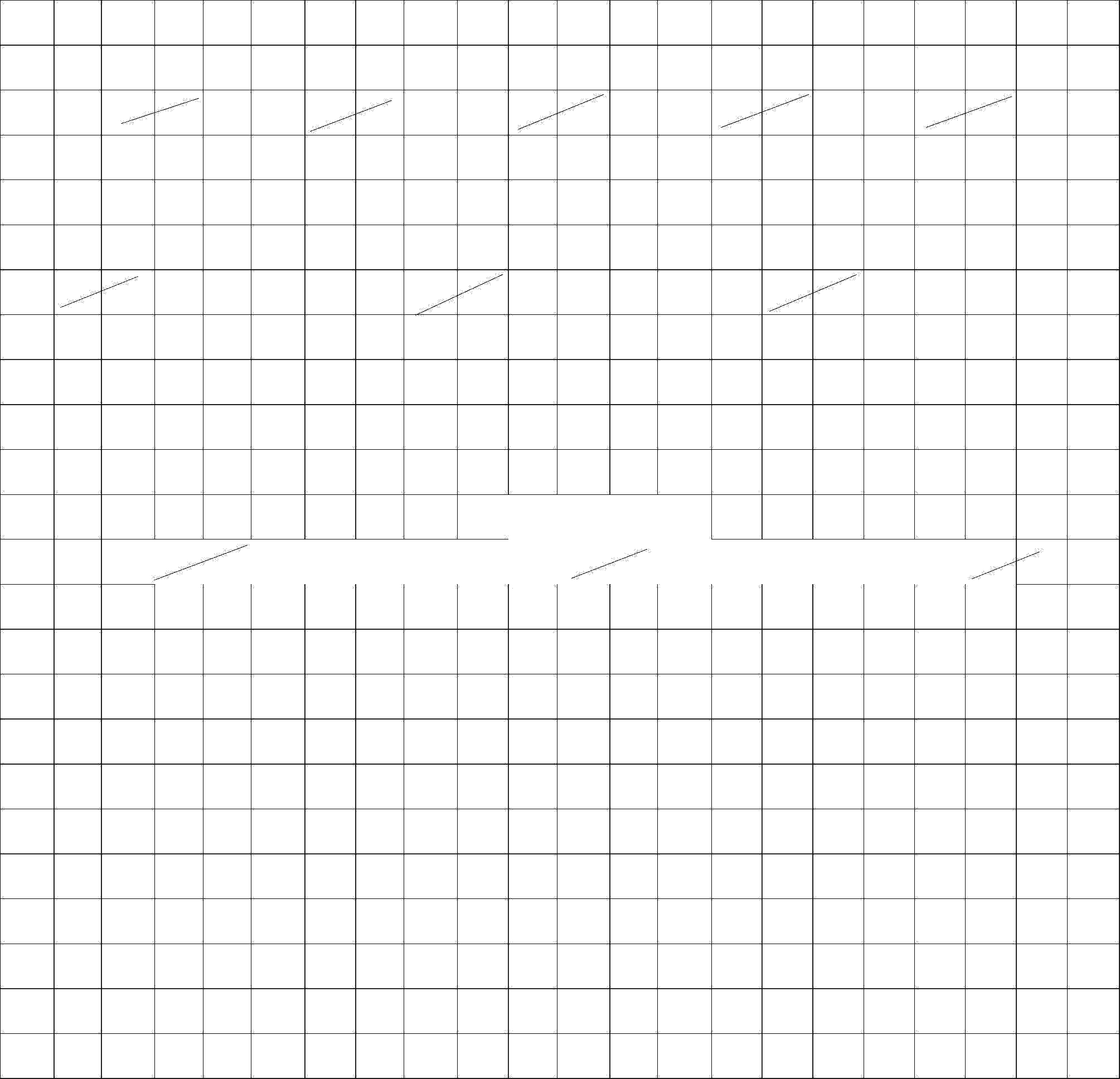Prjónið síðan munstur, og takið úr eins og sýnt er á munstri. Þegar munstri lýkur prjónið eina umferð með grunnlit og takið úr jafnt þar til að það eru 60 lykkjur á prjónunum, (tekið úr í fjórðu hverri lykkju).