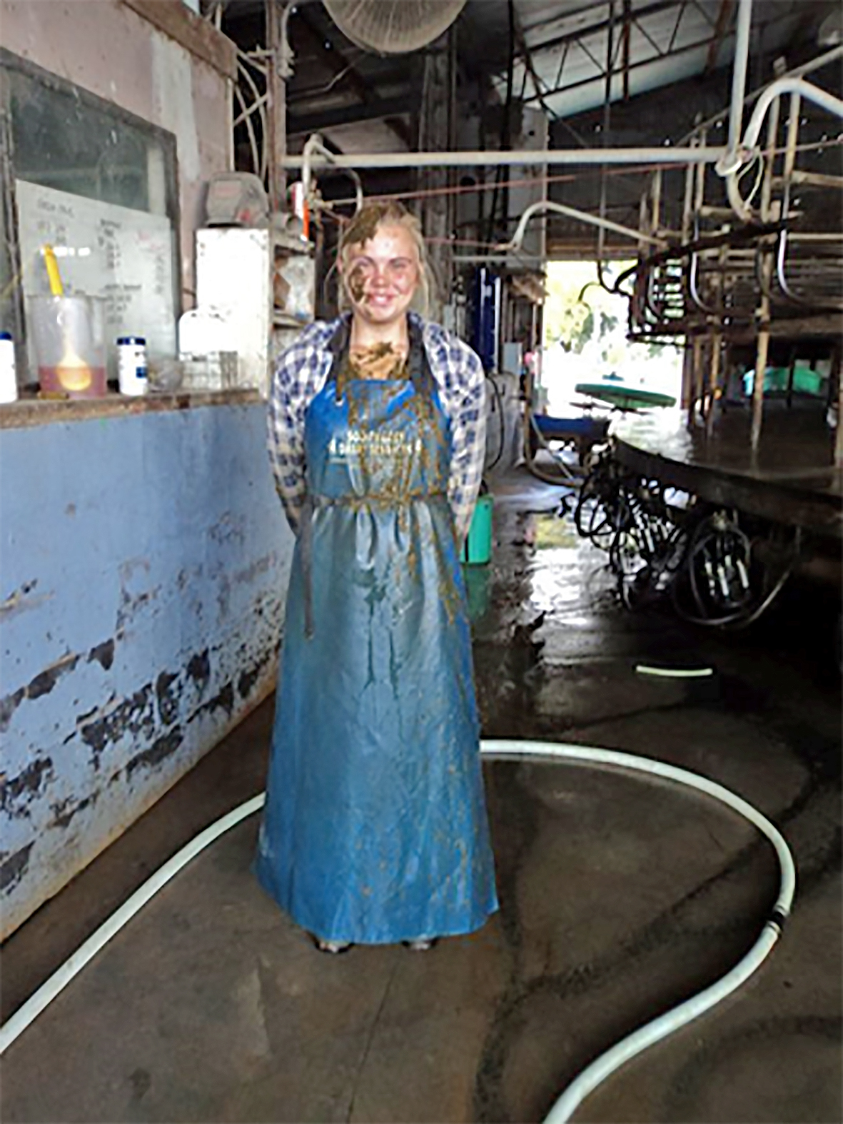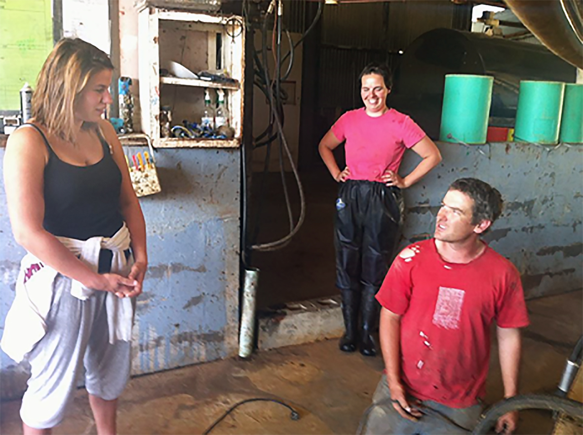 „Ég byrjaði að vinna á stóru kúabúi í Suður-Ástralíu, þar sem voru að meðaltali 700 kýr mjólkaðar þegar ég var þar og fór mest upp í rúmlega 900. Þar var notuð mjaltahringekja sem tók 42 kýr í einu, þær löbbuðu inn og maður setti mjaltatækin á aftan frá. Síðan var manneskja sem þurfti að taka þau af eða senda þær annan hring eftir því hvað þær mjólkuðu mikið.