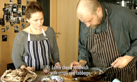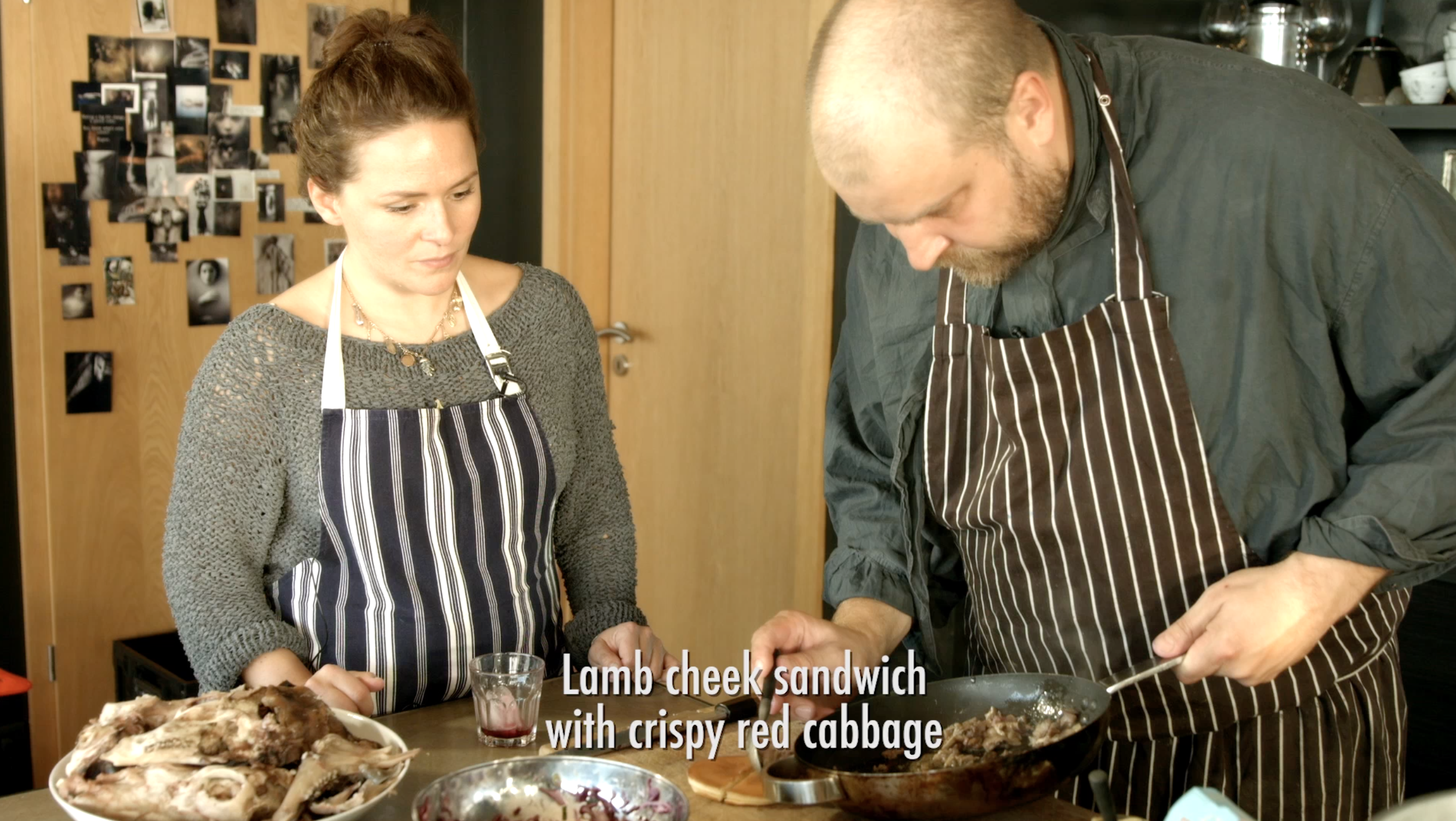 „Antto kom síðan til Íslands í viku og heimsótti framleiðendur. Hann var mjög áhugasamur um fisk en það var Emilíana sem stakk upp á að hann notaði steinbítskinnar. Hann var líka hrifinn af þaranum og notaði hann mikið í því sem hann þróaði. Hann var síðan kynntur fyrir sviðum á BSÍ og heillaðist algjörlega af matnum. Daginn eftir var hann kominn með hugmynd af sviðaskonsu. Útfærslan varð síðan sviðasamloka í London þar sem hann notaði sætt brauð með rauðkálssallati og sviðum.
