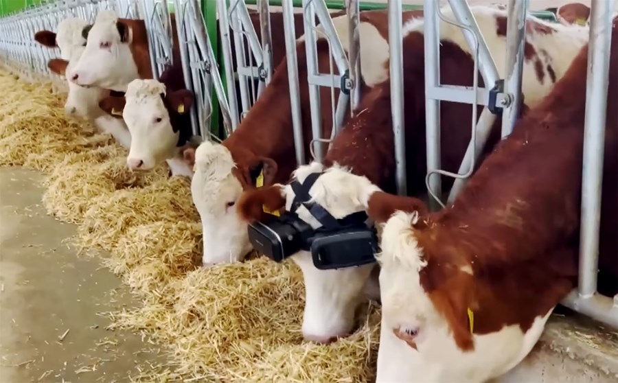 Rússnesku bændurnir á stórbúinu RusMoloko á Ramensky-svæði Moskvuborgar tóku sig til og keyptu sýndarveruleikagleraugu á alla hjörðina. Þar njóta kýrnar þess, á meðan þær matast, að upplifa græn og gróskumikil engi með aðstoð gleraugnanna og komið hefur í ljós að andleg líðan kúnna tók þó nokkurt stökk – auk þess sem nytjar þeirra jukust. Kaup sýndarveruleikagleraugnanna féllu undir könnun rússneska landbúnaðarráðuneytisins, en þar voru háttsettir ráðamenn í öngum sínum vegna minnkandi framleiðslu mjólkur. Á fundi þeirra varðandi framleiðsluna voru ýmis ráð rædd, tekið var fyrir hvernig Bandaríkjamenn bjóða upp á róterandi vélknúna bursta til að hygla dýrum sínum, íbúar meginlands Evrópu telja aukna hreyfingu gripanna vera bót allra mála og áður höfðu bændur Moskvu sett upp hljóðkerfi í fjósunum svo kýrnar gætu notið klassískrar tónlistar (með ágætis útkomu reyndar). Fundarmenn ráðuneytisins töldu þó að frekari aðgerða væri þörf og gripu því til hugmyndar bændanna um sýndarveruleikann og fengu útbúin gleraugu með aðstoð hönnuða sem tóku mið af sjón dýranna, sem meðal annars geta horft 330 gráður í kringum sig en skynja þó ekki liti sem greinilegast.