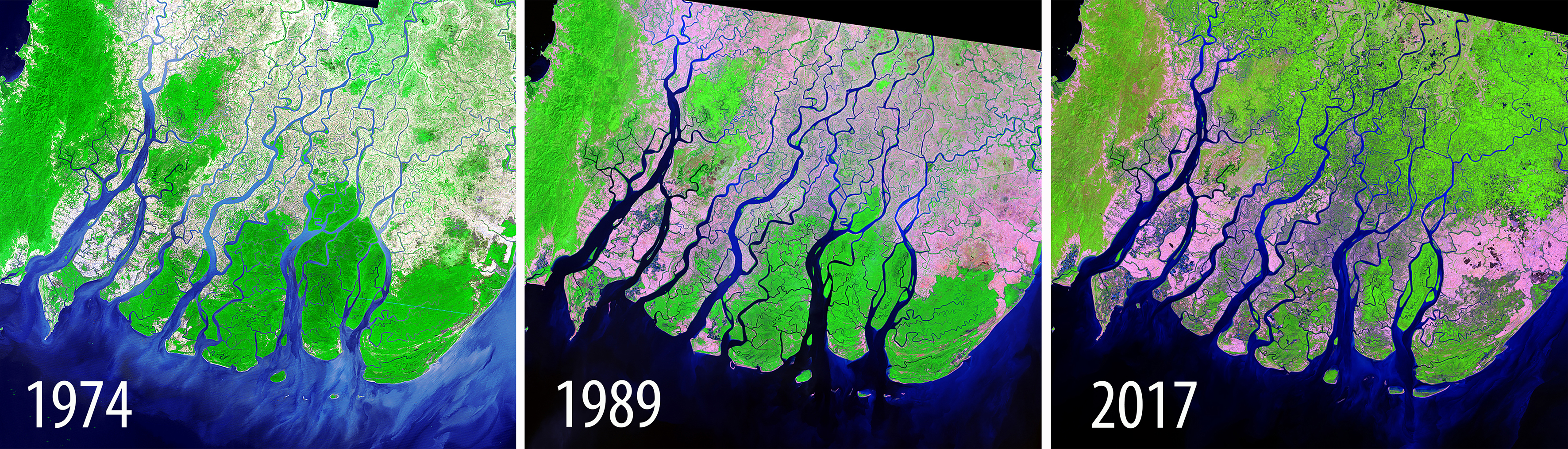 Gott dæmi um niðurbrot og eyðingu jarðvegs er hrísgrjónaræktarsvæðið Ayeyarwady Delta í Mjanmar. Þetta svæði er líka stundum kallað Irrawaddy. Hér má sjá Landsat gervihnattamyndir sem teknar eru af svæðinu með margra ára millibili. Lengst til vinstri er mynd sem tekin var í janúar 1974. Þá er vatnasvæðið við ströndina vel gróið. Næsta mynd var tekin árið 1989 þar sem bleiki liturinn sýnir að talsvert er farið að ganga á ræktarsvæðið. Þriðja myndin lengst til hægri var tekin úr gervihnetti árið 2017. Þar sést greinilega að mikil jarðvegseyðing hefur átt sér stað á ósasvæðinu við ströndina.