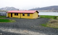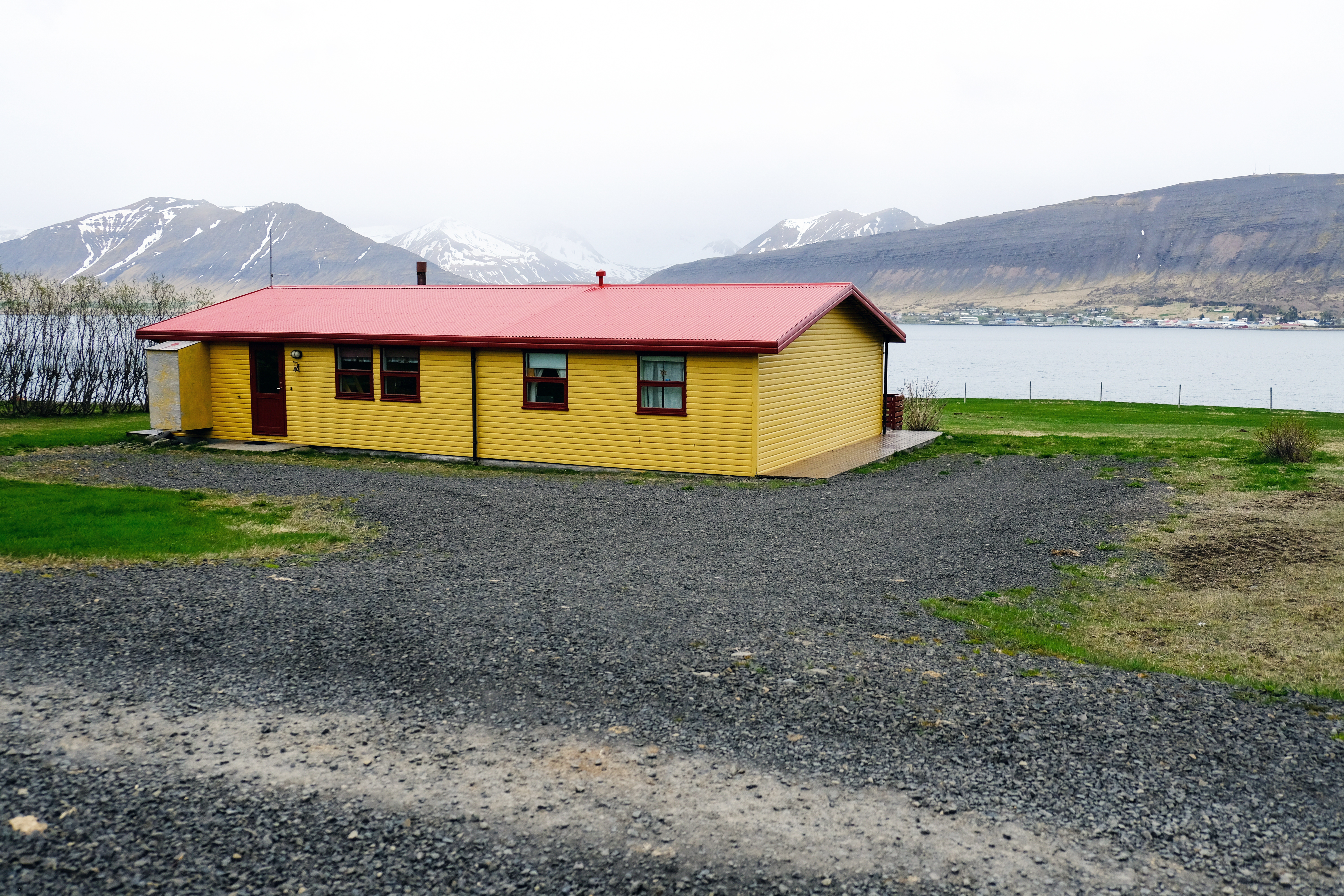 Þetta snotra hús í hlaðinu á Gemlufalli leigja þau Jón og Elsa út. Handan Dýrafjarðar er útsýni í suður til Þingeyrar.