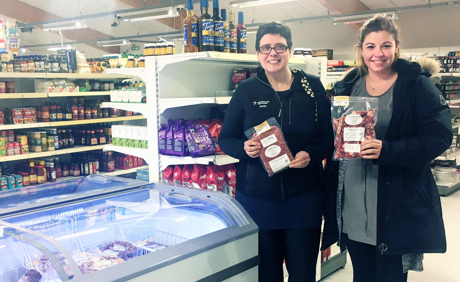 Hafdís Sturlaugsdóttir, bóndi í Húsavík á Ströndum, og Hulda Birna Albertsdóttir frá Náttúrustofu Vestfjarða með sauðfjárafurðir Húsavíkurbúsins vel upprunamerktar í Kaupfélagi Steingrímsfjarðar á Hólmavík. Mynd / úr einkasafni