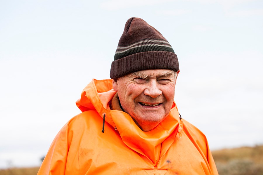 „Ég var nú hálf hikandi fyrst og vildi helst ekki láta mynda mig en svo sé ég ekki eftir því, þetta var mjög gaman og kemur vel út á sýningunni í Húsinu, ég er alveg hissa hvað margir eru búnir að skoða myndirnar af gamla karlinum,“ segir Gummi á Sandi eins og hann er alltaf kallaður og skellihlær, aðspurður um viðtökurnar við ljósmyndasýningunni „Rófubóndinn“ í Húsinu á Eyrarbakka.