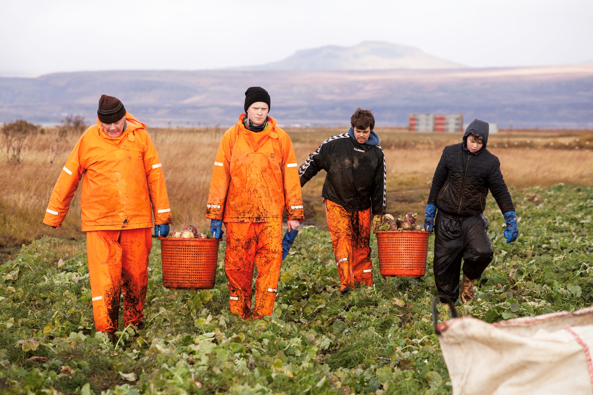 Það var mikil törn á hverju hausti hjá Gumma að ná rófunum upp úr görðunum en þá naut hann aðstoðar stálpaðra skólastráka á Eyrarbakka og fjölskyldu sinnar. „Það var frábært að hafa skólastrákana, sem héldu alltaf tryggð við mig. Við tókum allt upp með höndum, ég notaði aldrei vélar, þær gátu bilað en skólastrákarnir biluðu aldrei,“ segir Guðmundur og skellir upp úr.