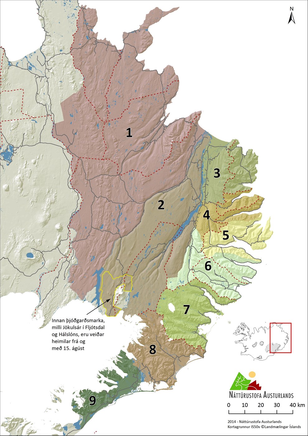 Veiðisvæði hreindýra.