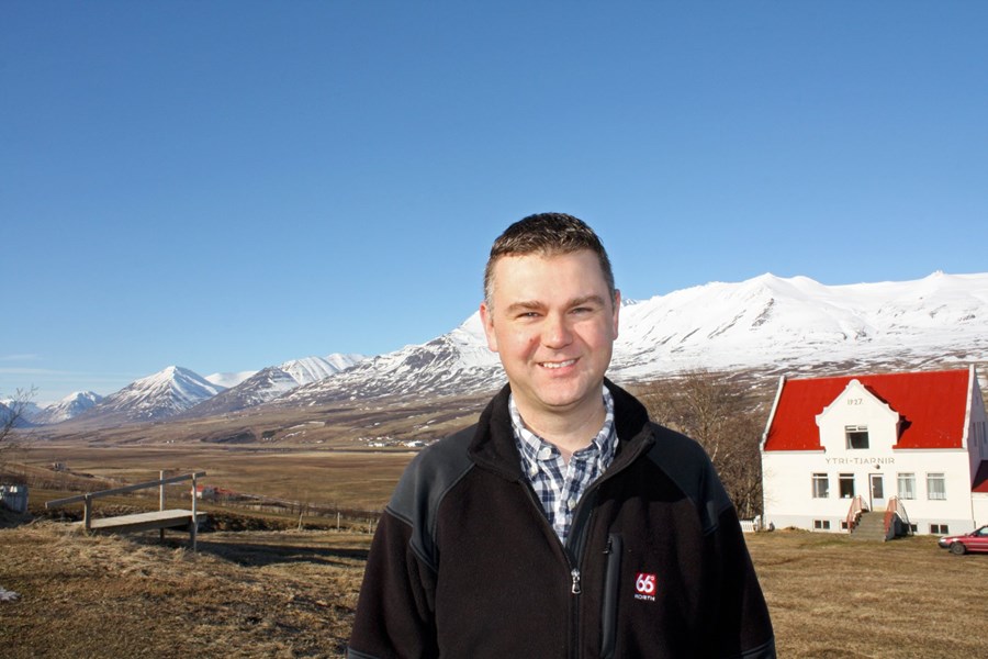 Baldur Helgi Benjamínsson í veðurblíðunni á þriðjudaginn við bæinn Ytri-Tjarnir í Eyjafirði þar sem hann er uppalinn.