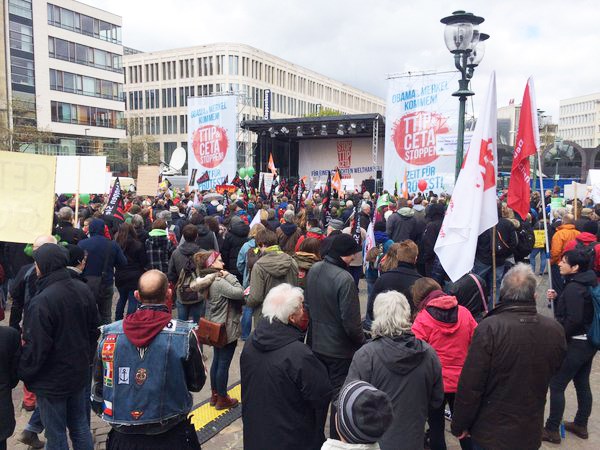 Þúsundir manna úr hópi neytenda og umhverfisverndarsinna í Þýskalandi mótmæltu harðlega í síðustu viku fyrirhuguðum Atlantshafs-viðskipta- og fjárfestingasamningi (Trans-Atlantic Trade and Investment Partnership - TTIP). Einnig var mótmælt svokölluðum CETA samningi milli ESB og Kanada (Comprehensive Economic and Trade Agreement).