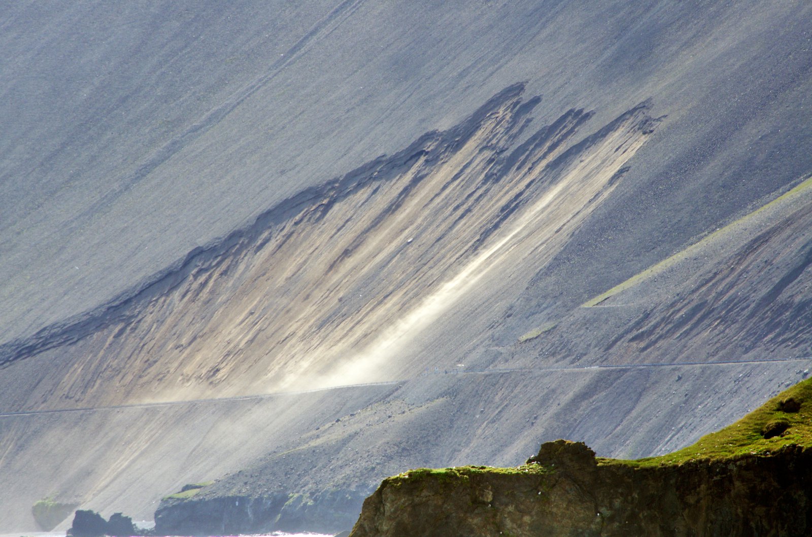 Hvalnesskriður á þjóðveginum milli Hornafjarðar og Djúpavogs. Þarna rétt fyrir norðan eru svo Þvottárskriður. Þessir kaflar eru oft á tíðum stórvarasamir.