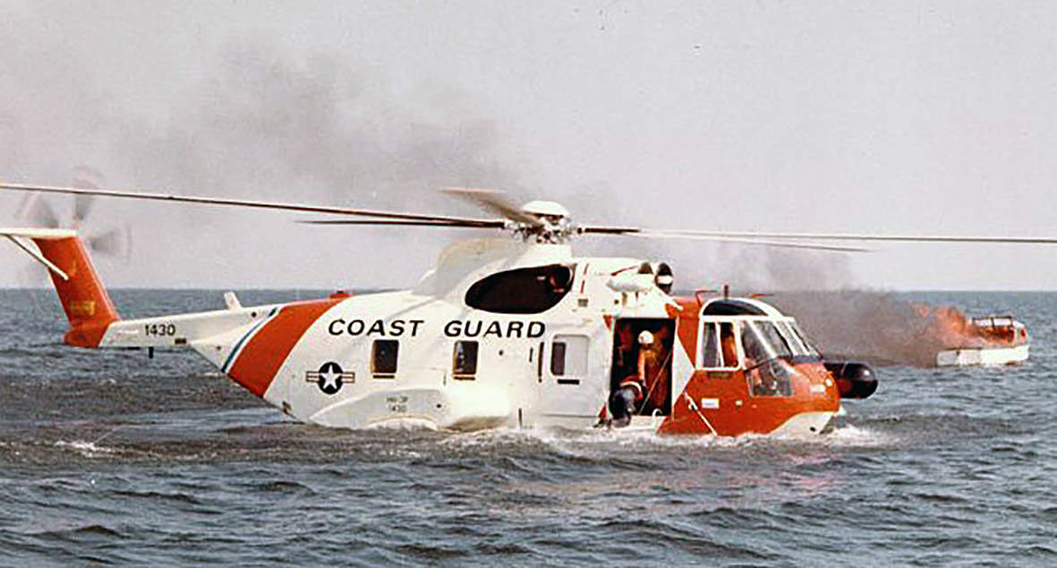 Bandarísk Sikorsky HH-3F Pelican. Þyrlur sem m.a. hefði verið mögulegt að kaupa fyrir fjármuni sem innheimtir eru af bifreiðaeigendum en hafa ekki verið notaðir í vegagerð.