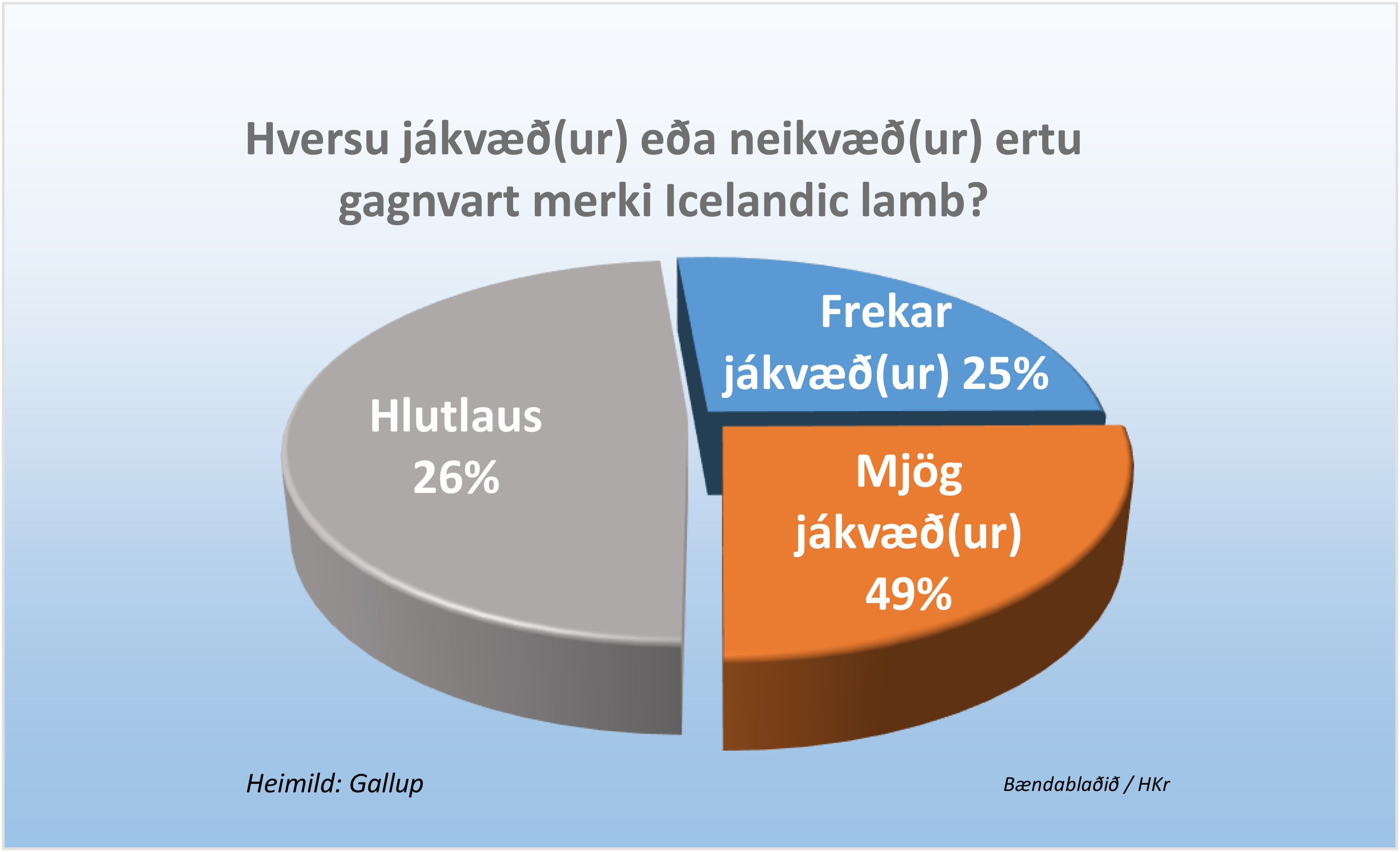 Í könnuninni kom einnig í ljós að 27% erlendra ferðamanna þekkja merki Icelandic lamb. Það merki hefur verið nýtt til að kynna lambakjötið í samstarfi við veitingastaði og verslanir. Svavar Halldórsson, framkvæmdastjóri Icelandic lamb og hugmyndafræðingur verkefnisins, segir að menn hafi verið að vonast eftir því að fleiri en 10% ferðamanna myndu þekkja merkið. Þessi niðurstaða hafi því farið langt fram úr björtustu vonum. Um 73% þeirra ferðamanna sem þekkja merkið hafa nokkuð eða mjög jákvæða ímynd af því. Fjórðungur er hlutlaus.