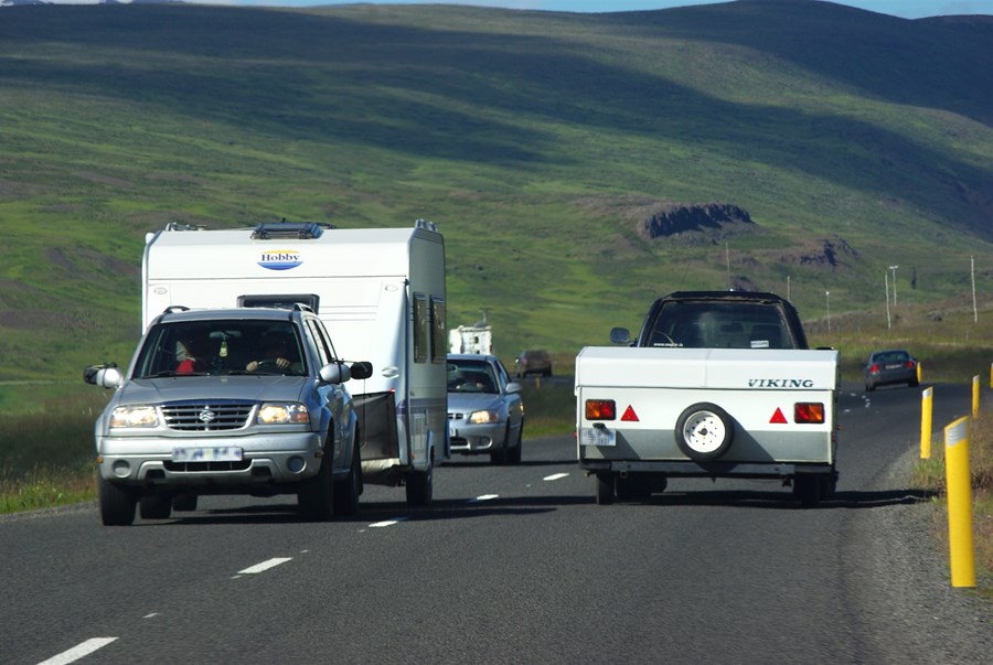 Umferð um Hringveg heldur áfram að aukast. Í nýliðnum maímánuði var hún 8,4% meiri miðað við maí árið á undan, en er þó ekki jafnmikið og hún hafði dregist saman í þeim hinum sama maí fyrir ári síðan um ríflega 10%.