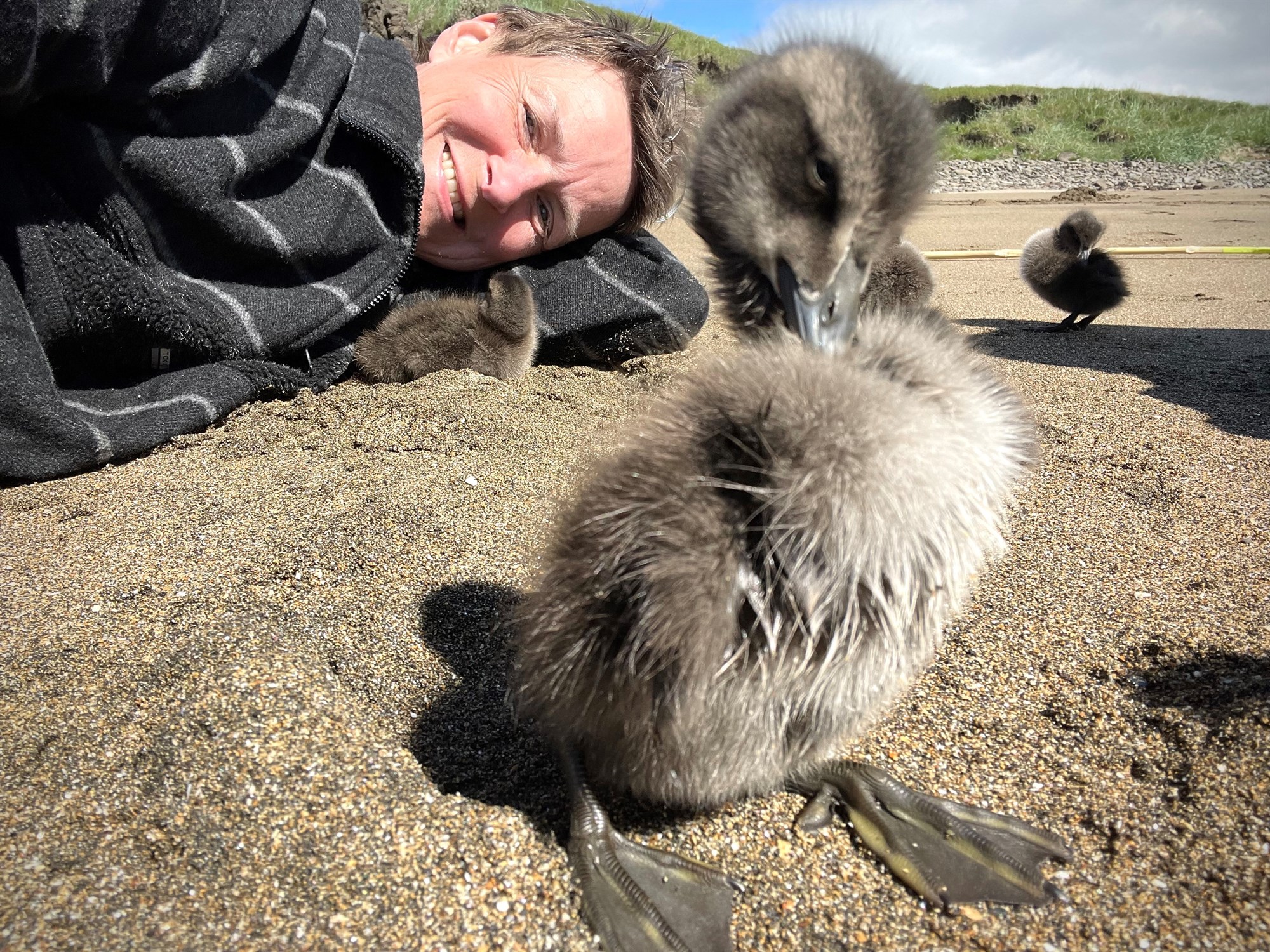 „Ég fer með unganna í göngutúr niður að sjó þar sem ég leyfi þeim að synda og svo gef ég þeim að borða þannig að ég hef gengið þeim í móðurstað og það er ótrúlegt hvað ungarnir eru ólíkir innbirgðs og hver og einn hefur sinn sérstaka karakter.