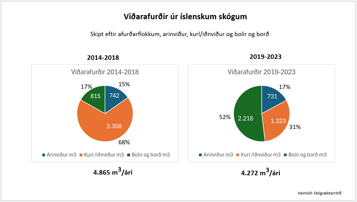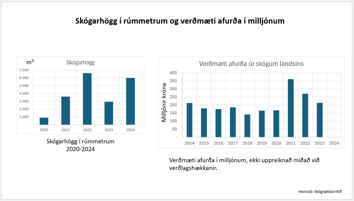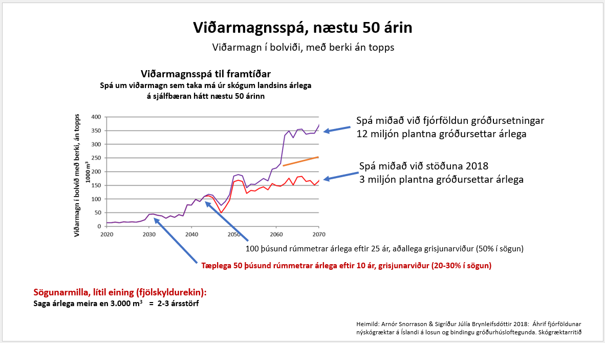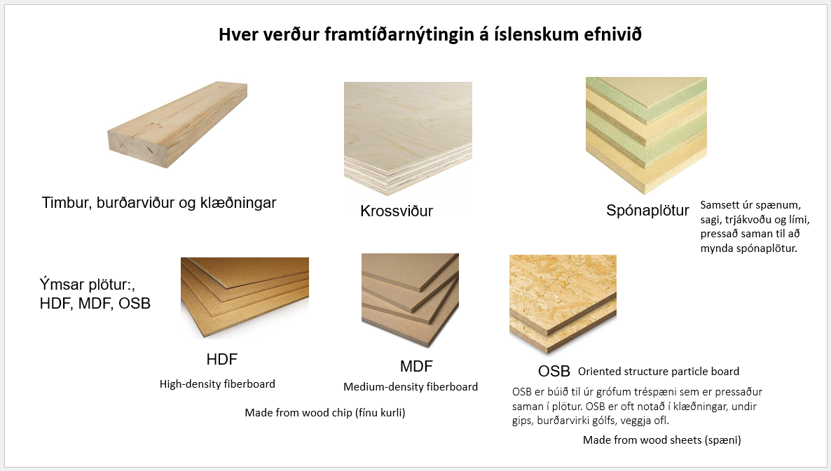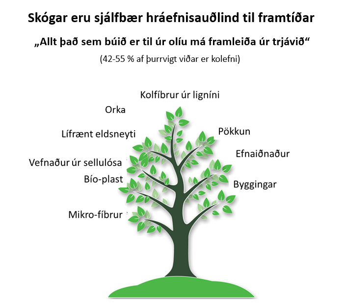 - Með markvissri þróun og uppbyggingu á innviðum skógarafurðaiðnaðarins má skapa ný tækifæri til innlendrar viðarframleiðslu, og stuðla þannig að sjálfbærri og arðbærri nýtingu íslenskra skóga.