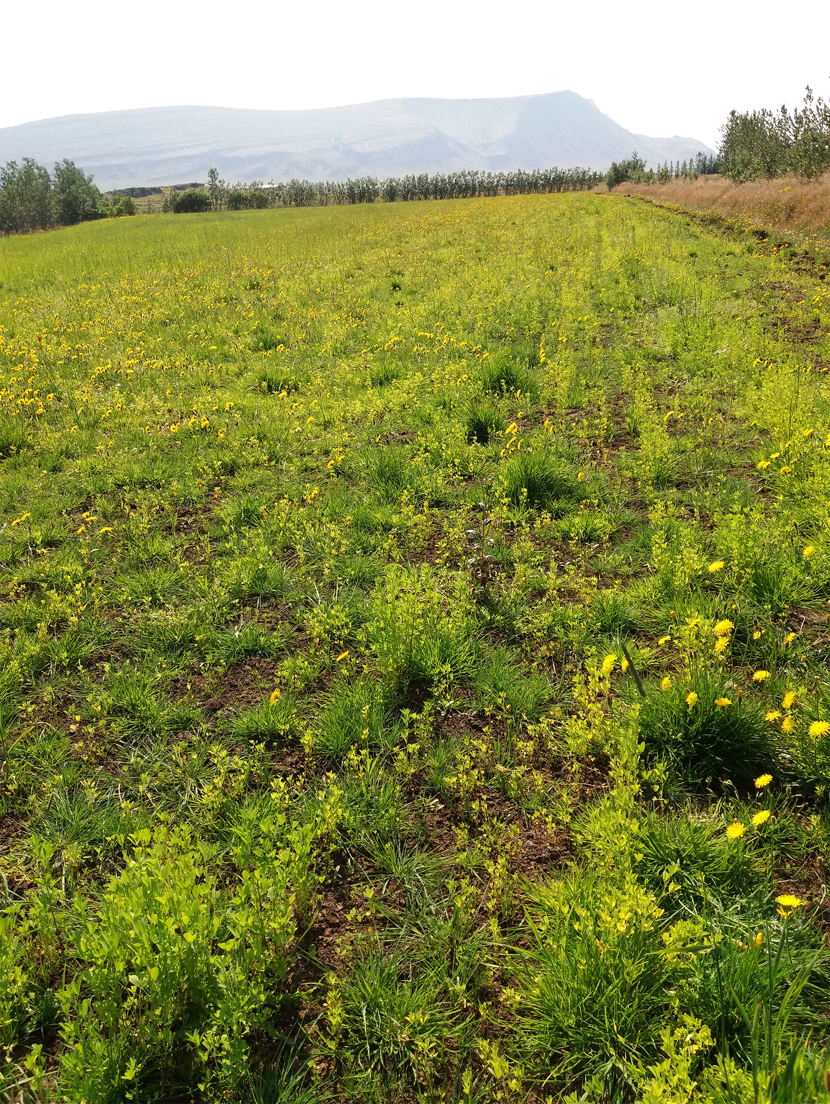 „Mig langaði að sjá hvernig refasmári, eða alfalfa, mundi dafna hér á landi eftir að ég las grein um plöntuna í Bændablaðinu síðastliðið haust og sáði smituðu fræi í kvarthektara í vor. Fræin spíruðu ágætlega og plönturnar rættu sig og hafa smám saman verið að tosast upp og stækka en þær eru talsvert misstórar. Sumarið hefur verið gott en þurrt og ég tel að þurrkurinn hafi hugsanlega dregið úr vextinum.