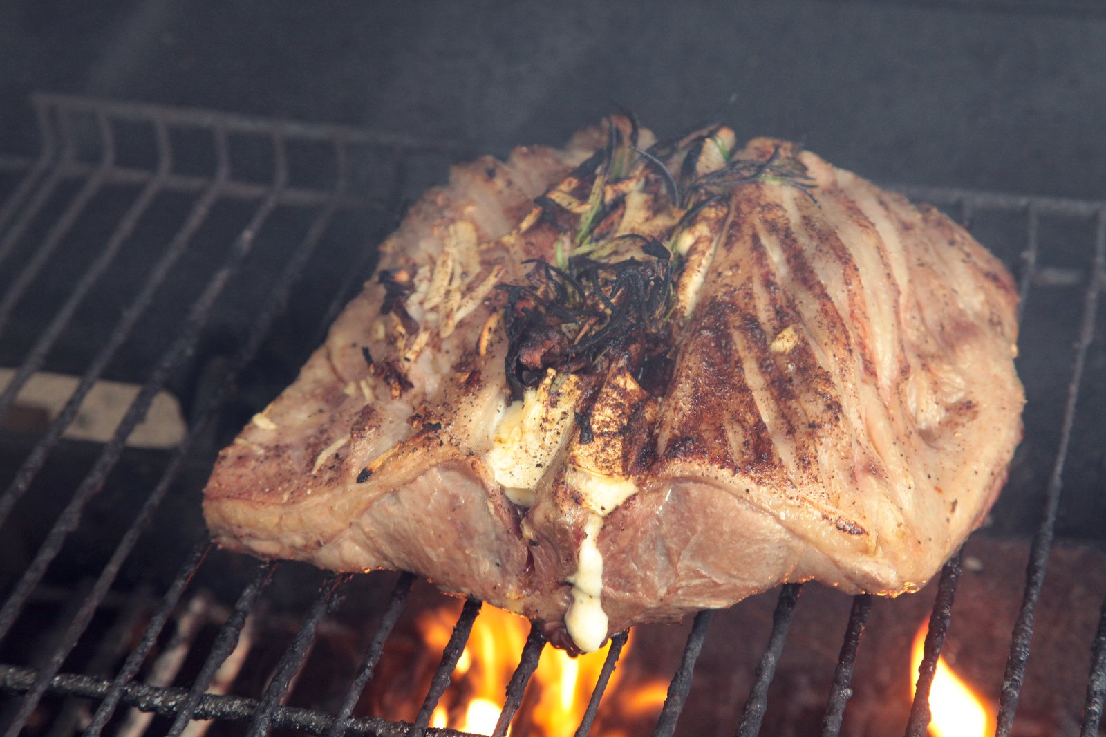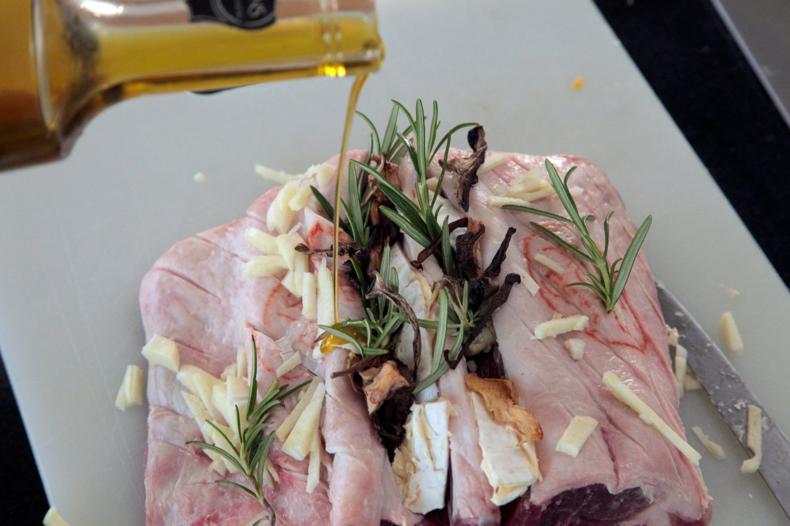 Fyrir lengra komna er gaman að úrbeina hrygginn þannig að fitulagið sé heilt. Þá er hægt að rúlla kjötinu upp með fyllingunni, binda fyrir eða setja grillspjót til að halda forminu á rúllunni.