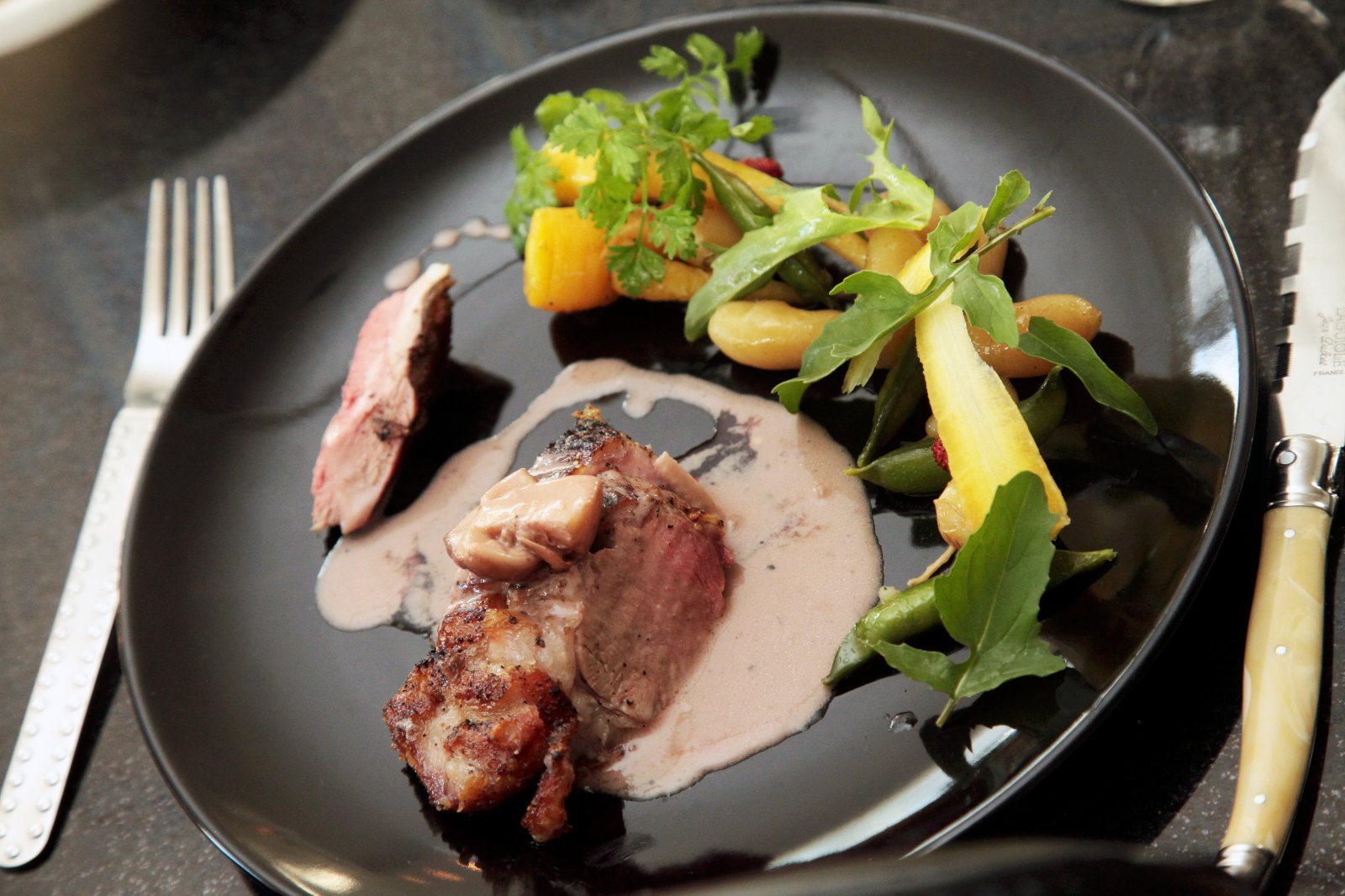 Gott ráð þegar kjarnhitamælir er notaður í eldamennskunni er að fjarlægja kjötið  úr ofninum ögn áður en hitinn sýnir 60°C og láta kjötið hvíla í 15–20 mínútur áður en steikin er skorin. Þá verður hún bleik og flott. Að endingu er kjötið framreitt með íslensku grænmeti og kartöflum.