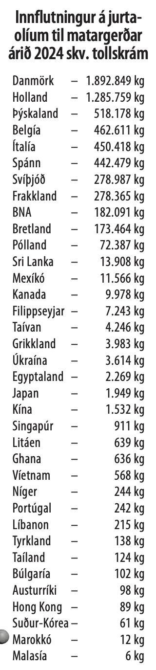 Evrópa glímir almennt við auknar áhyggjur af eiturefnum í matarolíu þar sem gögn sýna að mengun frá steinefnaolíum (e. Mineral Oil Hydrocarbons, MOH) og skyldum efnum sé bæði útbreidd og vanmetin. MOH eru lífræn kolvetnissambönd sem verða til við vinnslu hráolíu, en geta einnig átt uppruna í kolum, gasi eða lífmassa. Greining á evrópskum matvælum sýnir að steinefnaolíur geta borist í olíur við uppskeru, vinnslu, gegnum vélar, eða úr umbúðum.
