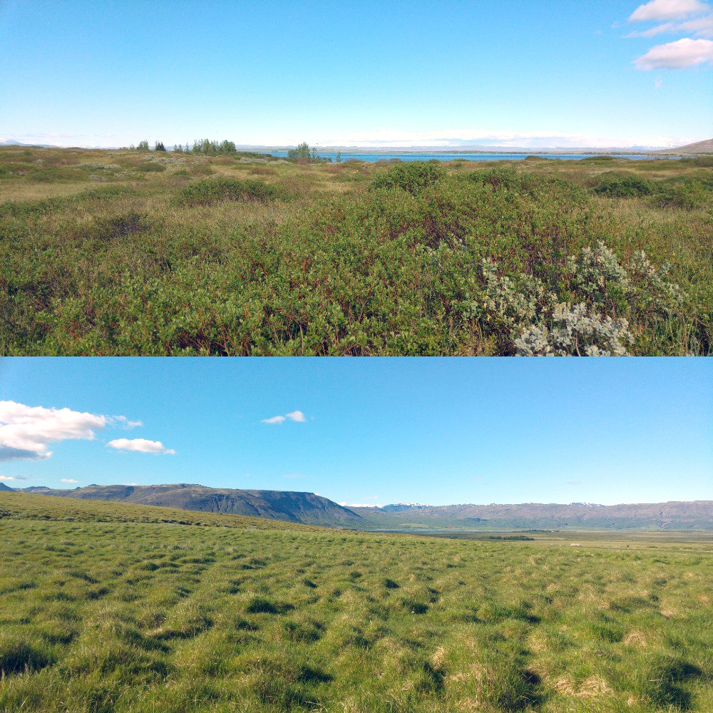Runnasvæði og samanburðarsvæði án runnagróðurs. Myndir / Sigurður Björn