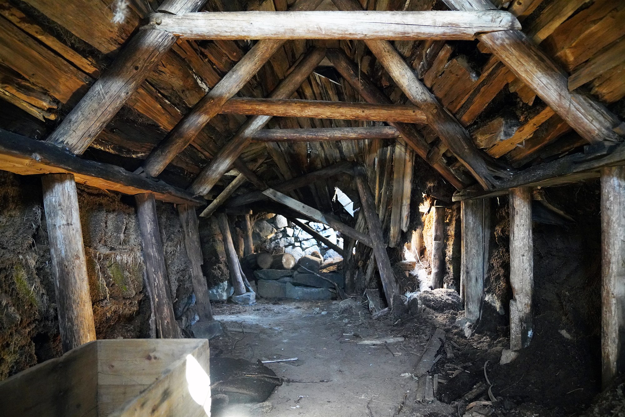 „Raki hefur farið illa með timbur í grind og þaki, auk þess sem snjóþyngsli til viðbótar við þungann af torfinu hafa skekkt húsgrindina,“ segir Anna.