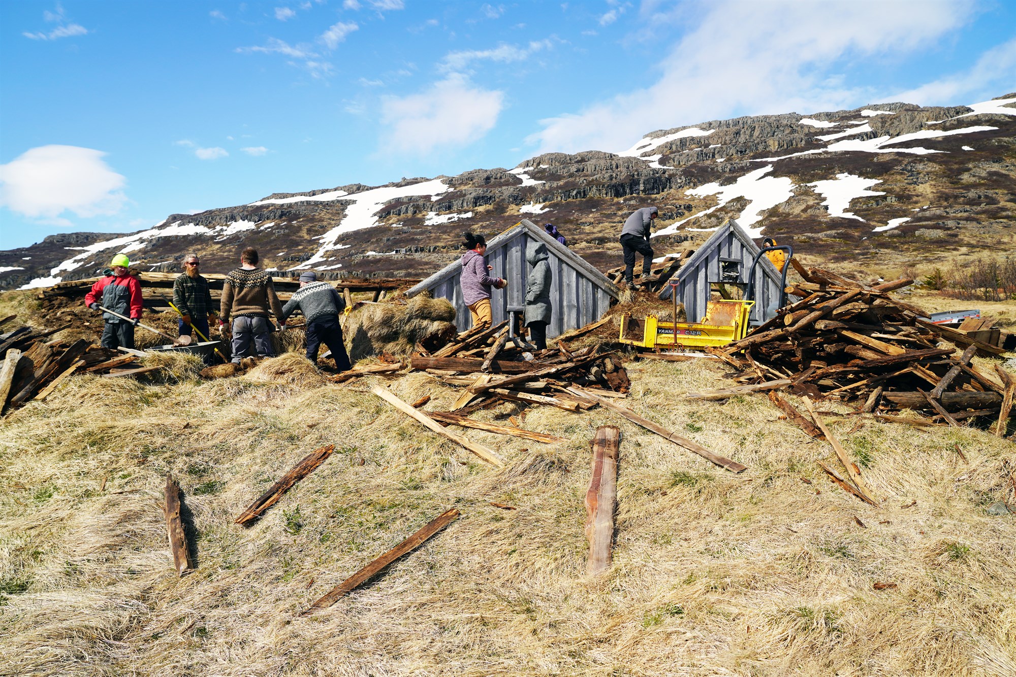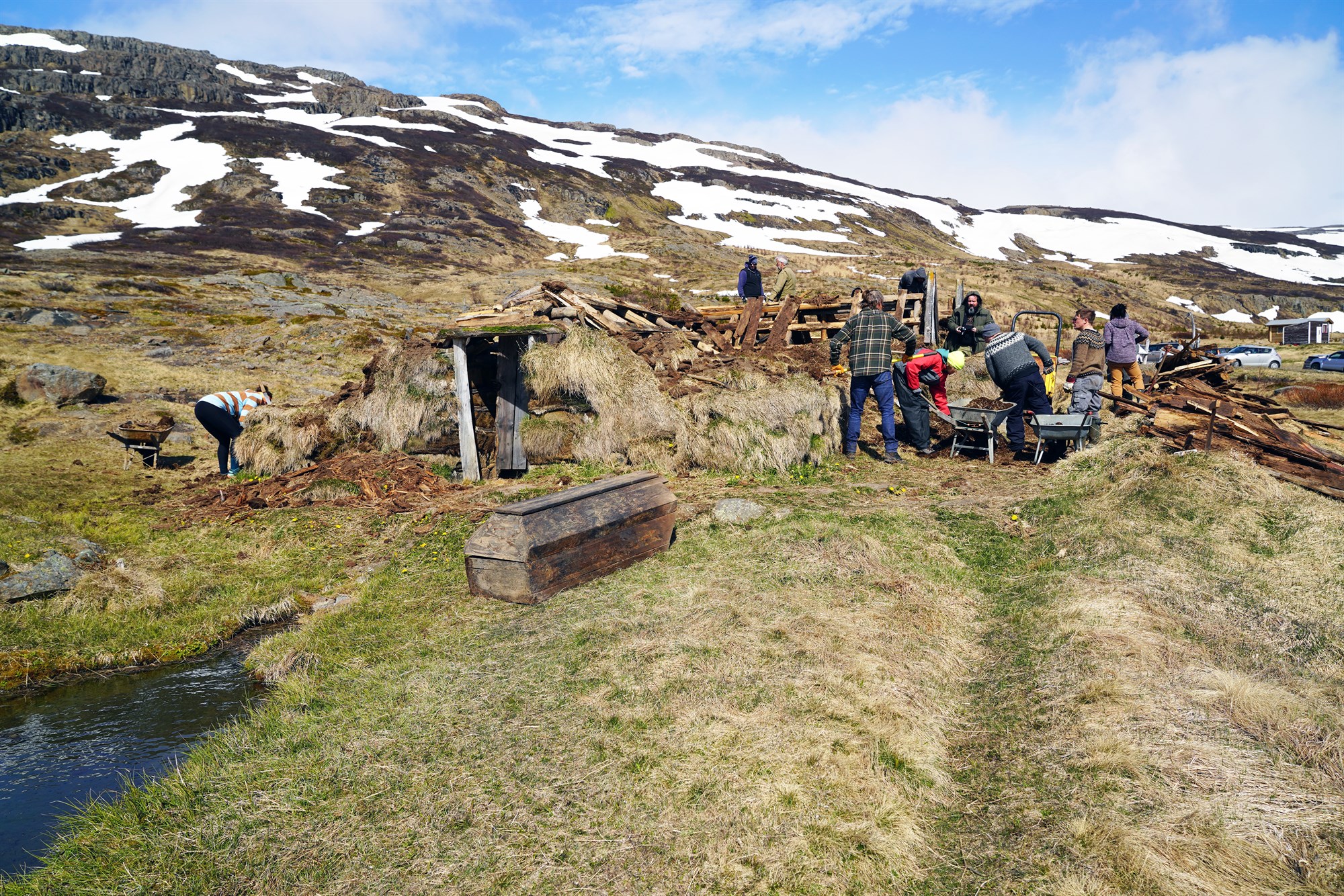 Vaskir sjálfboðaliðar í viðgerðum á Kotbýli kuklarans í Bjarnarfirði