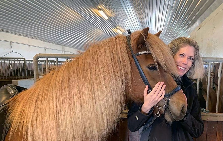Hún er dugleg við að ríða út og nefnir þrjú eftirlætis hross í reiðtúrum. „Það er tvímælalaust Katla, svo stóðhesturinn Ódinn vom Habichtswald og hyssan Úlfhildur frá Strönd, en hún er með 9,5 fyrir tölt og ég er með hana heima í Sviss.“