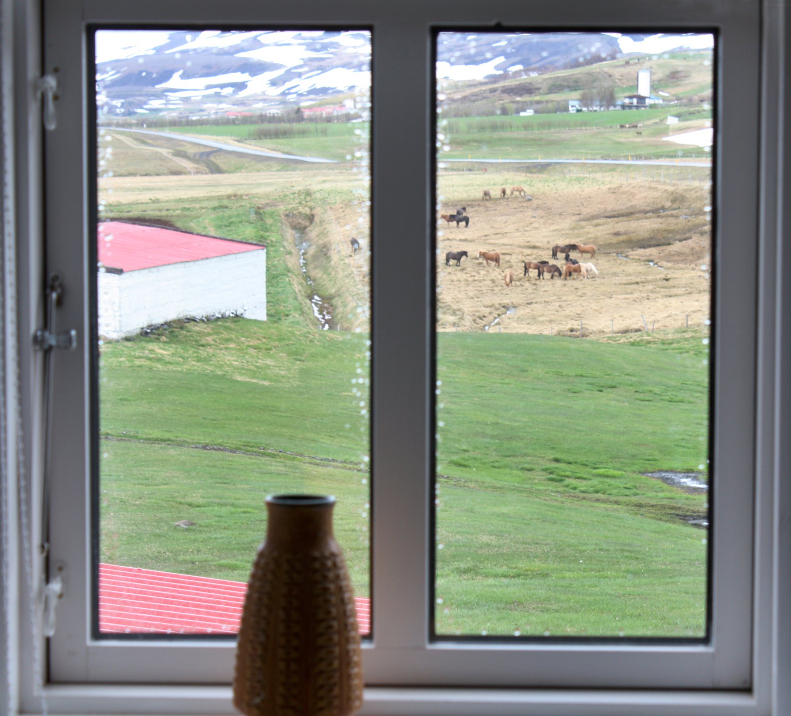 „Húsið hefur staðið hér í rúma tvo áratugi, svo gott sem ónotað. Þegar við ákváðum að skella okkur út í endurbætur og hefja hér ferðaþjónustu var stefnan sú að gera sem allra mest sjálf og það höfum við gert. Við nýttum okkur hluti sem til voru, pabbi var nýtinn maður og gerði lítið af því að henda þannig að við höfðum af nægu að taka. En ef til vill má segja nú þegar öllu er lokið að sem betur fer vissum við ekki alveg fyllilega út í hvað við vorum að fara þegar framkvæmdir hófust,“ segir Valgerður. „Þetta var ansi mikið verk.“