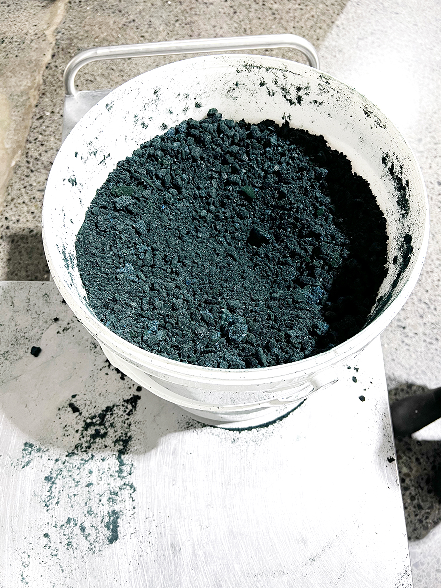 Blágrænir spirulina smáþörungar nýkomnir út úr þurrkaranum.