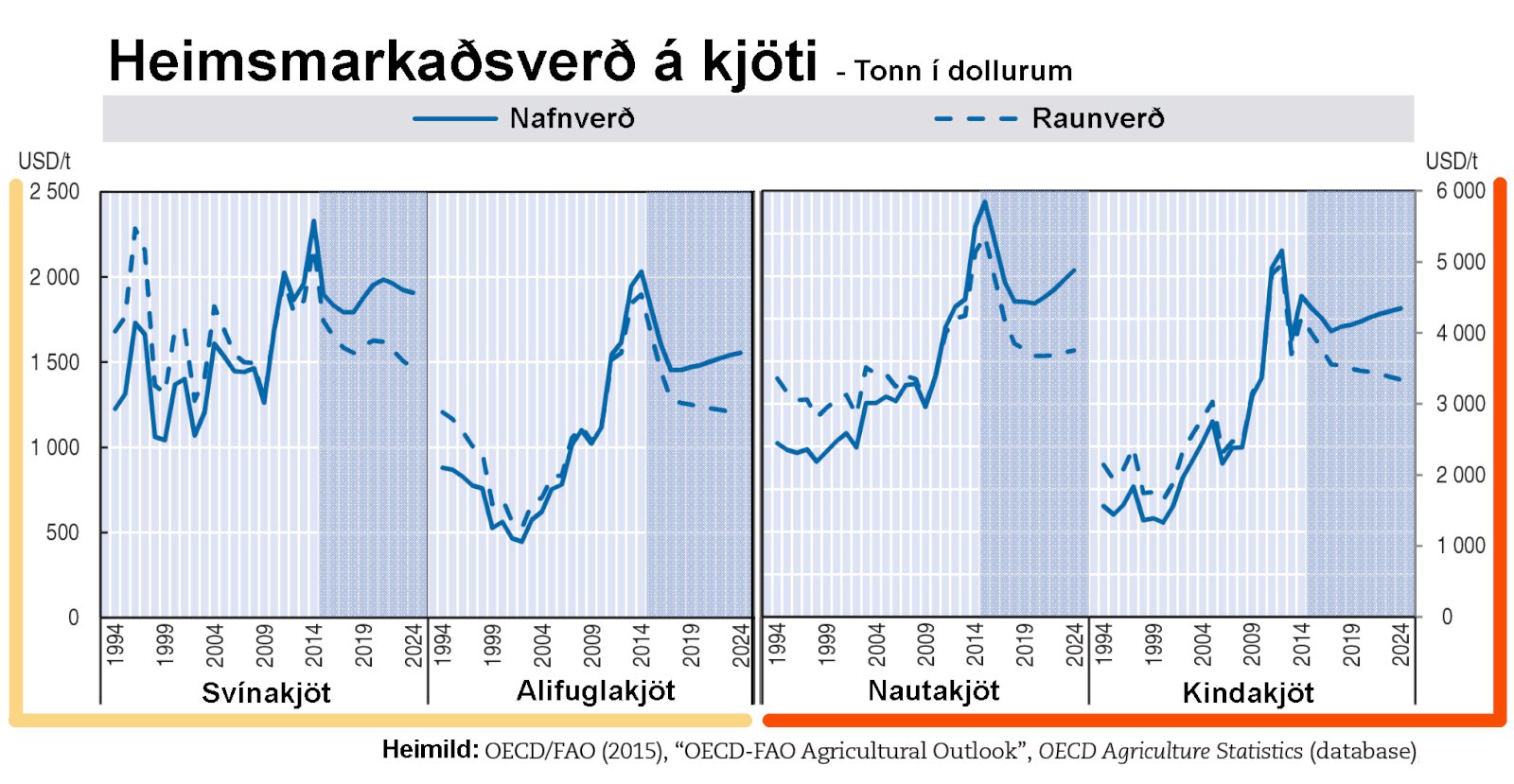Heimsframleiðslan á nauta- og kálfakjöti er nú um 68,2 milljónir tonna og mun aukast í um 75,4 milljónir tonna á næstu tíu árum ef spár ganga eftir.