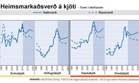 Heildarframleiðslan (brúttó) í kjöti er þó umtalsvert meiri en tölurnar hér að framan segja til um. Í þessum neyslutölum er miðað við sundurhlutaða skrokka í smásölu, en alltaf er talsvert úrkast eins og hausar og annað sem fellur til við slátrun. Þannig er margfeldistalan fyrir naut 0,7 sem og kálfa, en 0,78 fyrir svín, en 0,88 fyrir sauðfé og alifugla. Því má ætla að heildar kjötframleiðslan vegin við slátrun árið 2024 verði nálægt 475 milljónum tonna en ekki 355 milljónum eins og lagt er út af í spánni.