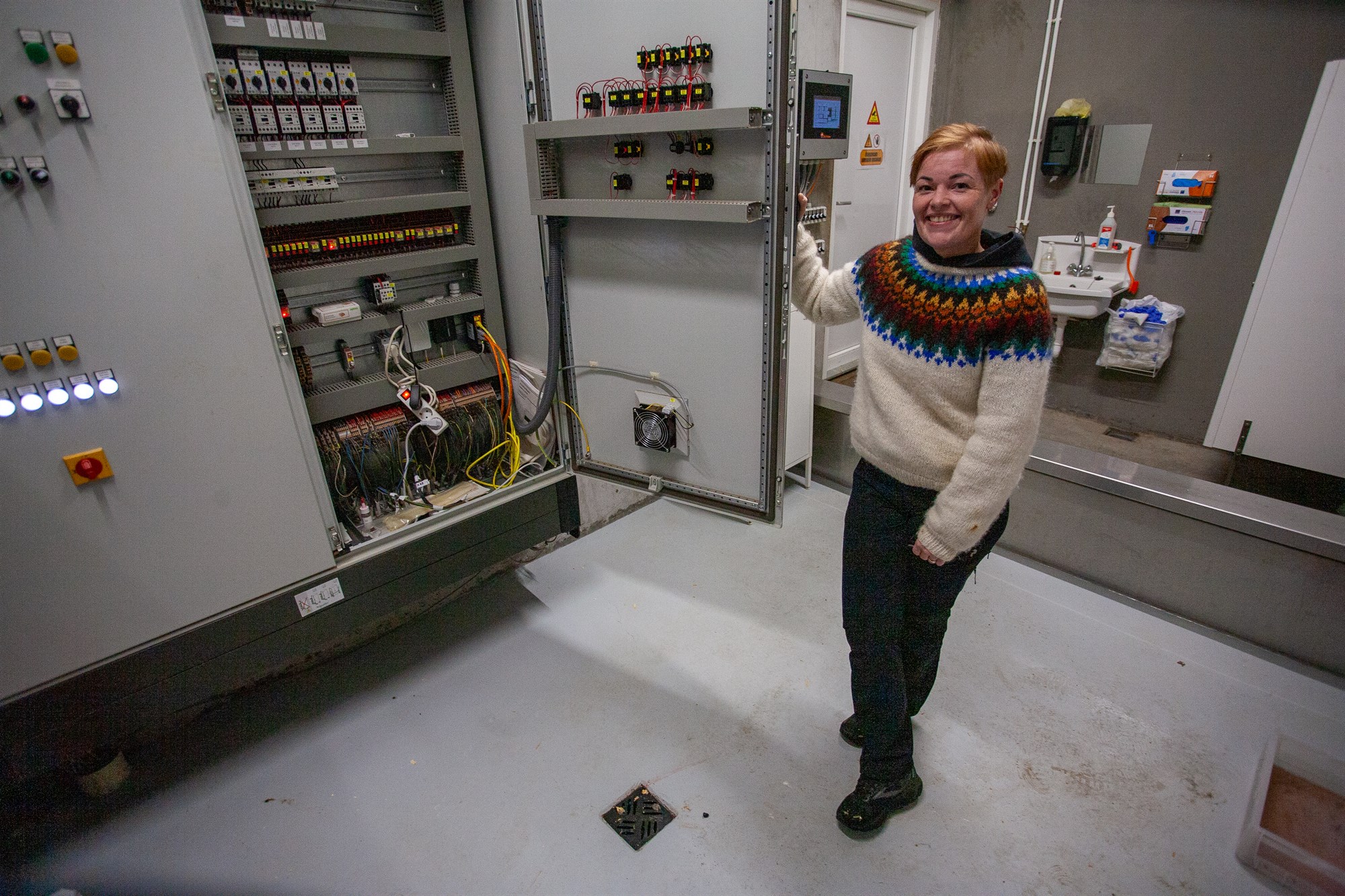 1. Tölvuskápurinn í nýju húsunum: „Ég hef aldrei á ævinni séð svona marga víra og tengingar.“ Þar er stýringin á öllum tækjabúnaði sem viðkemur fóðrun, loftræstingu, lýsingu og fleira.