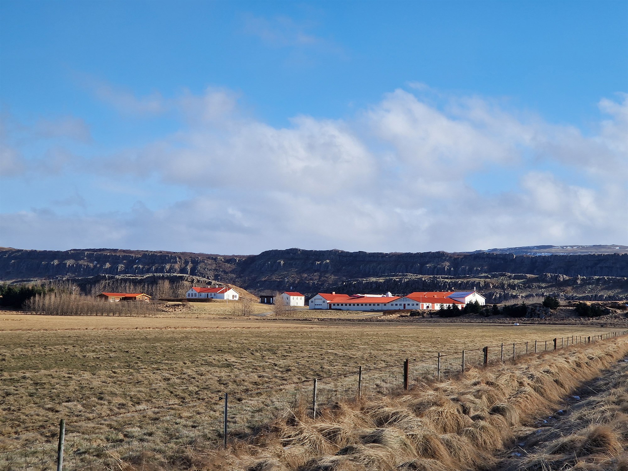 Pétur segir grunninn að býlinu hafa verið lagðan fyrir áratugum síðan, en árið 1963 tóku pabbi hans og afi í notkun 72 kúa básafjós, sem var mjög stórt á sínum tíma. „Afi minn, Jón Kjartansson, keypti þessa jörð á frjálsum markaði árið 1947, meðal annars út af heita vatninu. Hann átti heima í Reykjavík, en á þeim árum var byrjað að leggja hitaveituna og sá hann möguleikann í því. Pabbi kom árið 1951,“ segir Pétur, en Diðrik var tengdasonur Jóns Kjartanssonar.