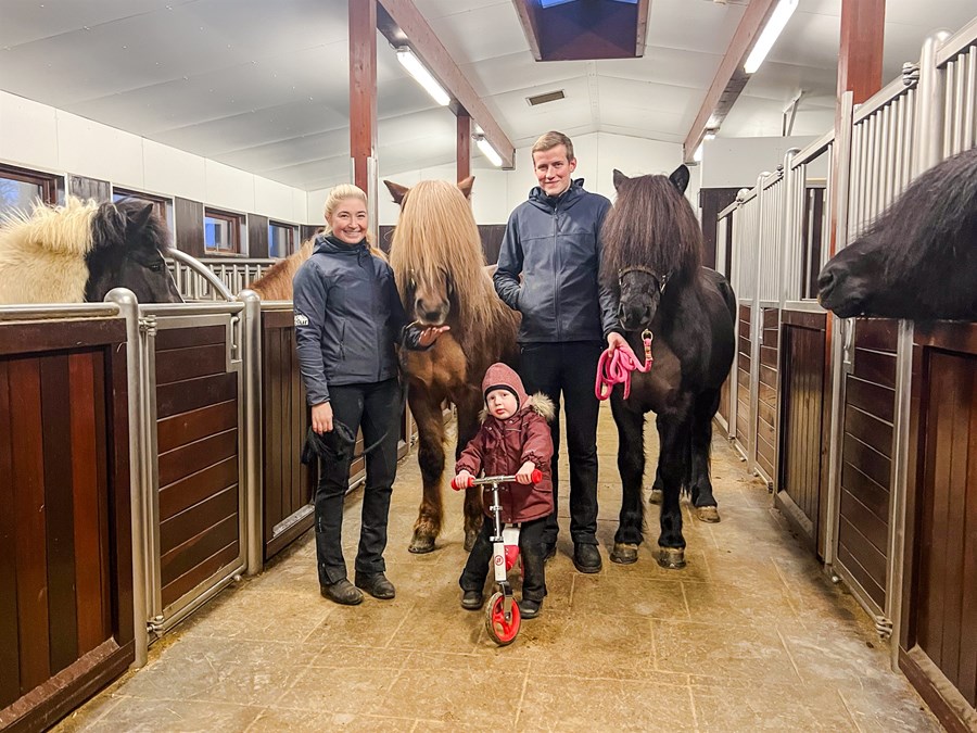 „Við erum með mikið að spennandi hrossum, bæði ungum hrossum sem stefnt er með í kynbótasyningar, svo en hrossin sem við frumtömdum þegar við komum hingað eru á sjöunda vetri núna. Það tekur alltaf ákveðin tíma að byggja upp hross svo við erum spennt að fara að spreyta okkur með þau á keppnisbrautinni,“ segir Axel en hann og Elín Magnea munu bæði taka þátt 1. deildinni og