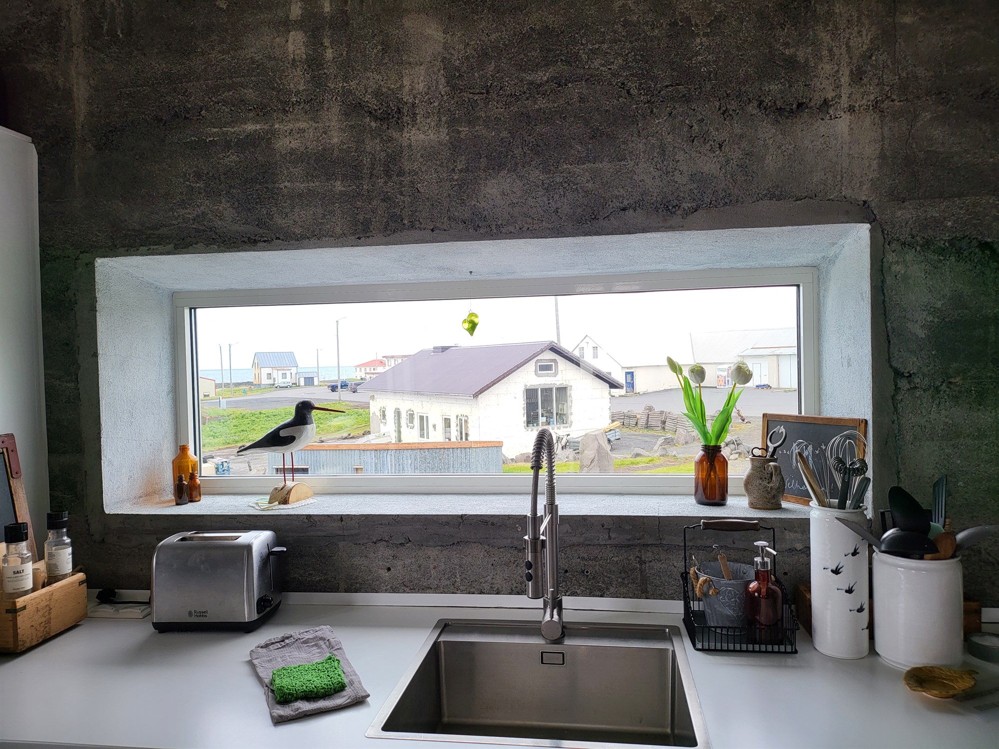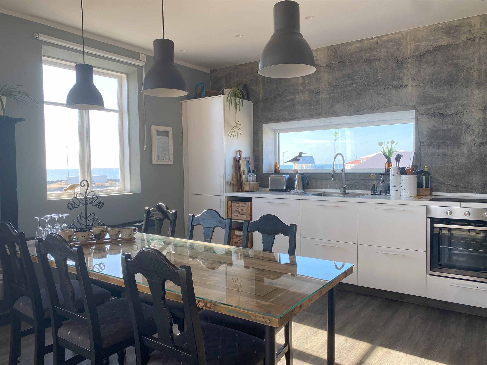 Á efstu hæð eru fjögur herbergi, sum með svefnlofti og eitt með snyrtingu. Herbergin bera fuglanöfn, enda er Kópasker og Melrakkasléttan öll gósenland fuglaskoðunarfólks. Á miðhæðinni er opið rými með fullbúnu eldhúsi, svölum og snyrtingu og útsýnið þaðan er „milljóndollara“ virði svo slett sé upp á útlensku.
