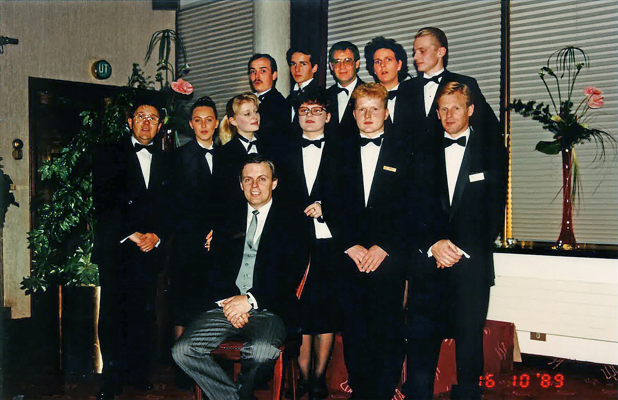 Baldur með samstarfsfólki á Grillinu. Talið frá hægri, efri röð: Baldur Sæmundsson, Kristján Nói Sæmundsson, Halldór Sigdórsson, Nanna Snorradóttir og Sævar Vígsteinsson. Neðri röð: Trausti Víglundsson, Þórey Í. Halldórsdóttir, Signý Marta Böðvarsdóttir, Hafdís Gunnarsdóttir, Tómas Bolli Hafþórsson og Sveinn Sveinsson. Sitjandi fremst á mynd er Halldór Skaptason. Mynd / Hótel Saga