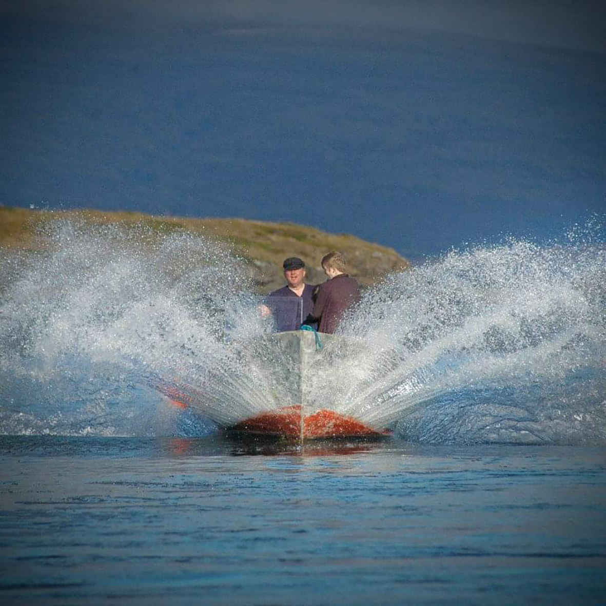 Jón og Hulda hafa komið sér upp góðum og vel útbúnum bát til að sigla út í eyjar. „Hér áður fyrr tók alveg klukkutíma að sigla en við skjótumst þetta núna á tuttugu mínútum,“ segir Jón og fullyrðir að hann verði aldrei of gamall til að sinna búskapnum í Rifgirðingum.