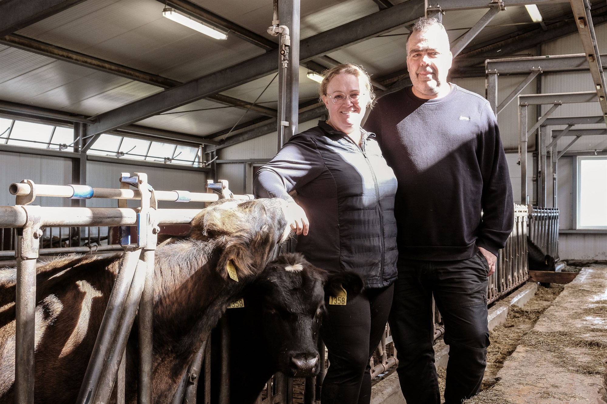 Rafn Bergsson og Majken Egumfeldt-Jörgensen eru alsæl með aðstæðurnar í fjósinu á Stóru-Hildisey 1.
