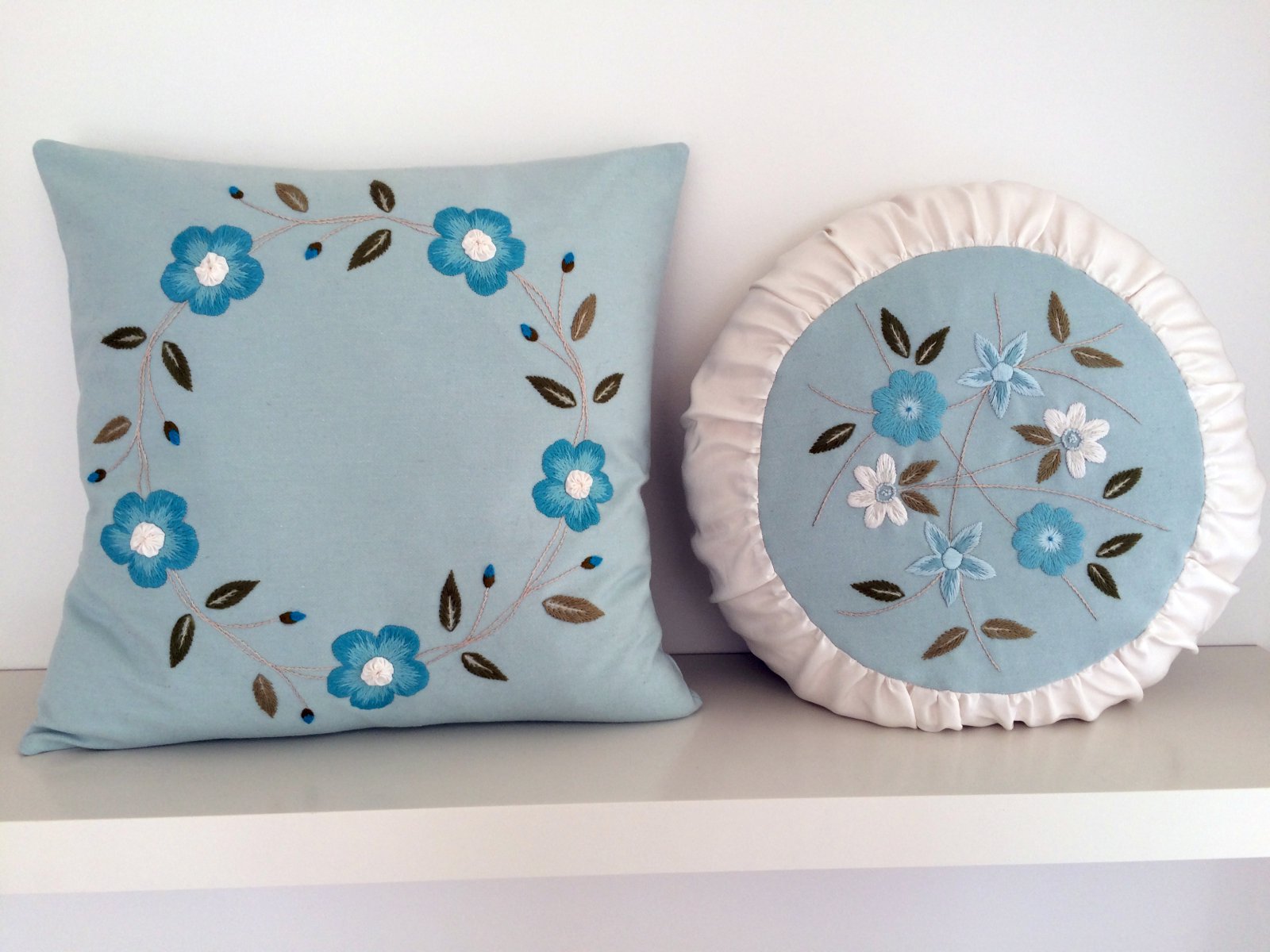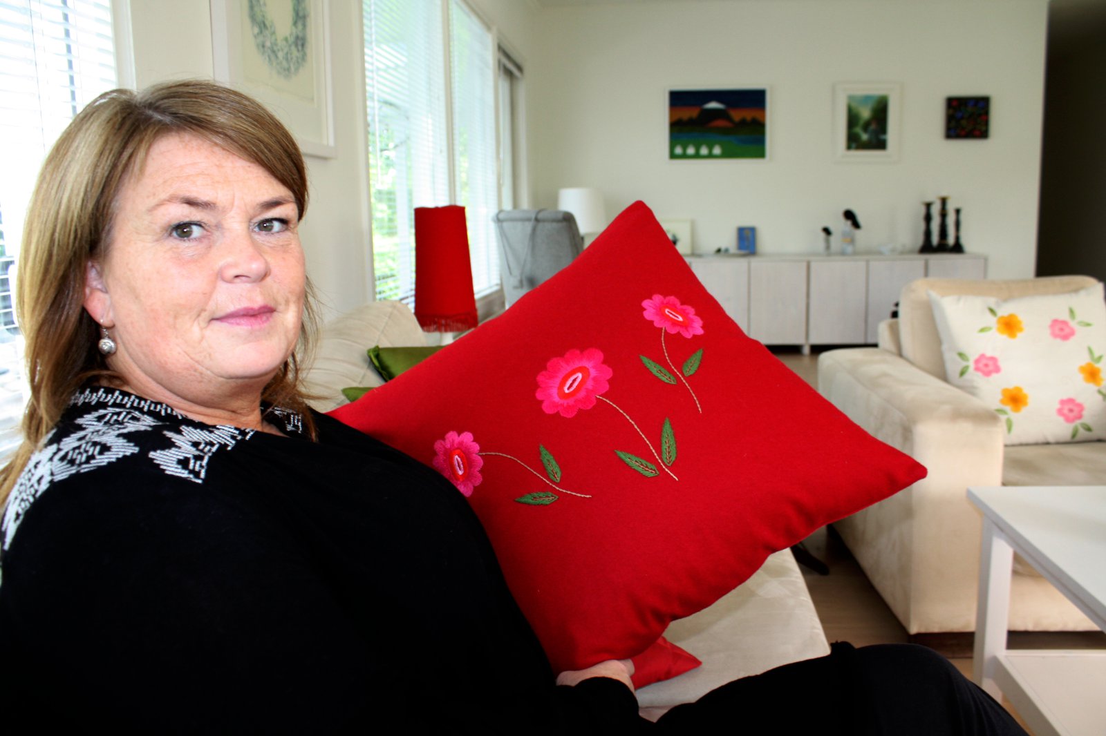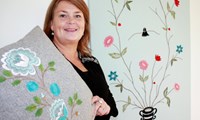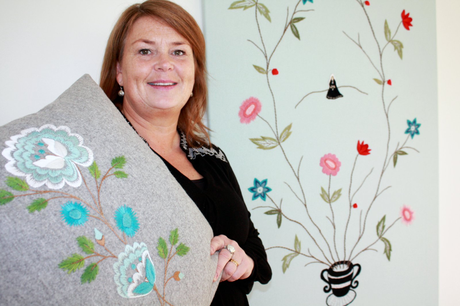 Hún tók síðan fljótlega til við að hanna og bródera í púða.