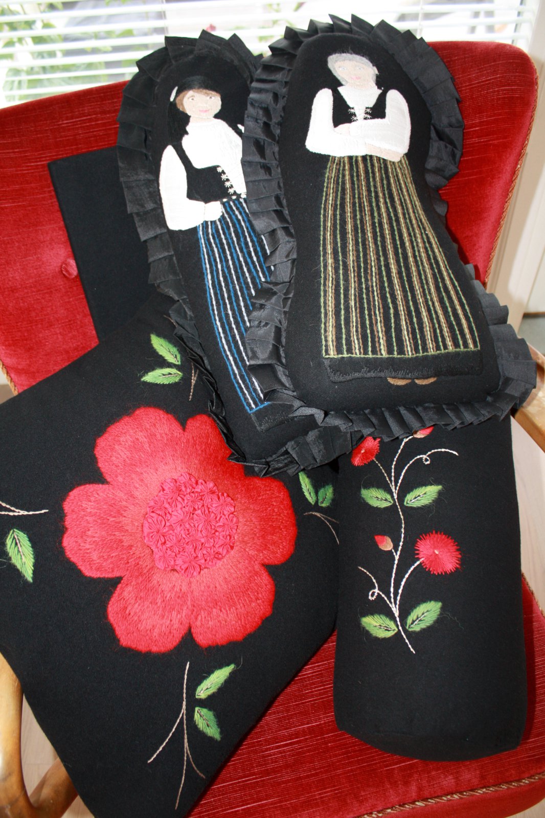 Auk púðanna hefur hún til að mynda líka saumað út myndir, bæði litlar og stórar, og einnig gert púða með myndum sem tengjast íslenska þjóðbúningnum. Hún sýndi nokkur útsaumsverk sín af því tagi á gluggasýningu hjá Litlu saumastofunni við Brekkugötu fyrr í sumar en hún var sett upp í tengslum við 100 ára afmæli kosningaréttar kvenna og bar yfirskriftina: Skundum á kjörstað.