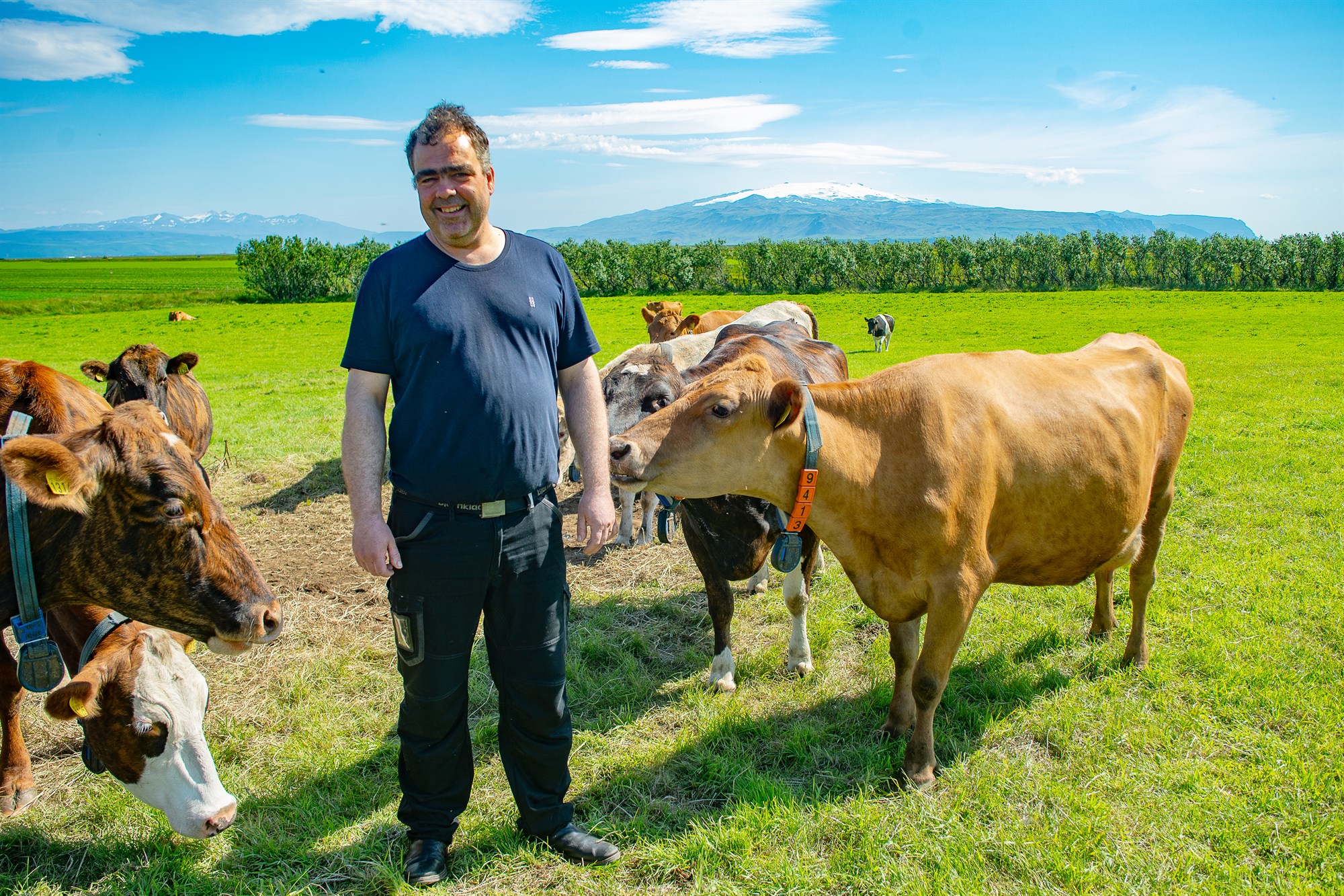 Rafn er kúabóndi á StóruHildisey í Austur-Landeyjum og býr þar með eiginkonu sinni, Majken Egumfeldt-Jörgensen, og tveimur börnum þeirra. „Við rekum hér kúabú og erum í kringum 500.000 lítra í greiðslumarki. Að auki erum við aðeins í nautakjötsframleiðslu, með 50–60 lifandi naut á hverjum tíma í framleiðslu. Svo eru hér nokkur hross en við erum fókuseruð á nautgriparæktina,“ segir Rafn, en fjölskyldan er tiltölulega nýflutt á Stóru-Hildisey. „Við fluttum hingað fyrir ári síðan. Áður bjuggum við í Hólmahjáleigu hér í Austur-Landeyjum, ég er fæddur þar og uppalinn. Við tókum við Hólmahjáleigu af foreldrum mínum árið 2005. Þá var engin mjólkurframleiðsla þar lengur, þau höfðu hætt framleiðslu tveimur árum áður. Við byrjuðum þá frá grunni, vorum búin að byggja upp og komin með mjaltaþjón þar í gömlu fjósi. En okkur langaði að komast í betri aðstöðu. Vorum búin að velta vöngum um að byggja jafnvel nýtt fjós. Svo var þessi jörð á sölu og við ákváðum að láta slag standa og skoða. Okkur leist vel á og miðað við okkar aðstæður var þetta besti kosturinn fyrir okkur. Hér komumst við í mun betri aðstöðu og aukum jafnframt framleiðsluna talsvert. Þetta er rétt hjá, þetta eru átta kílómetrar hérna á milli.“