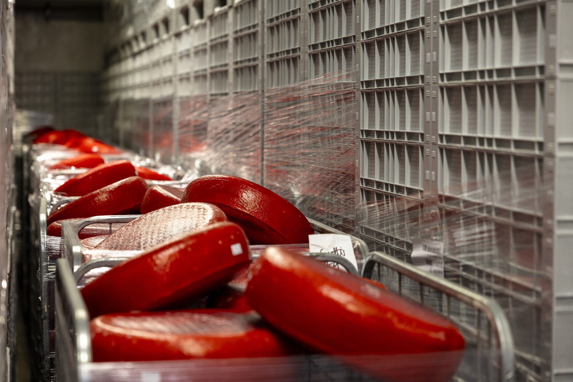 Hérna sést stór lager af skagfirsku Goðdalaostunum sem bíður pökkunar.